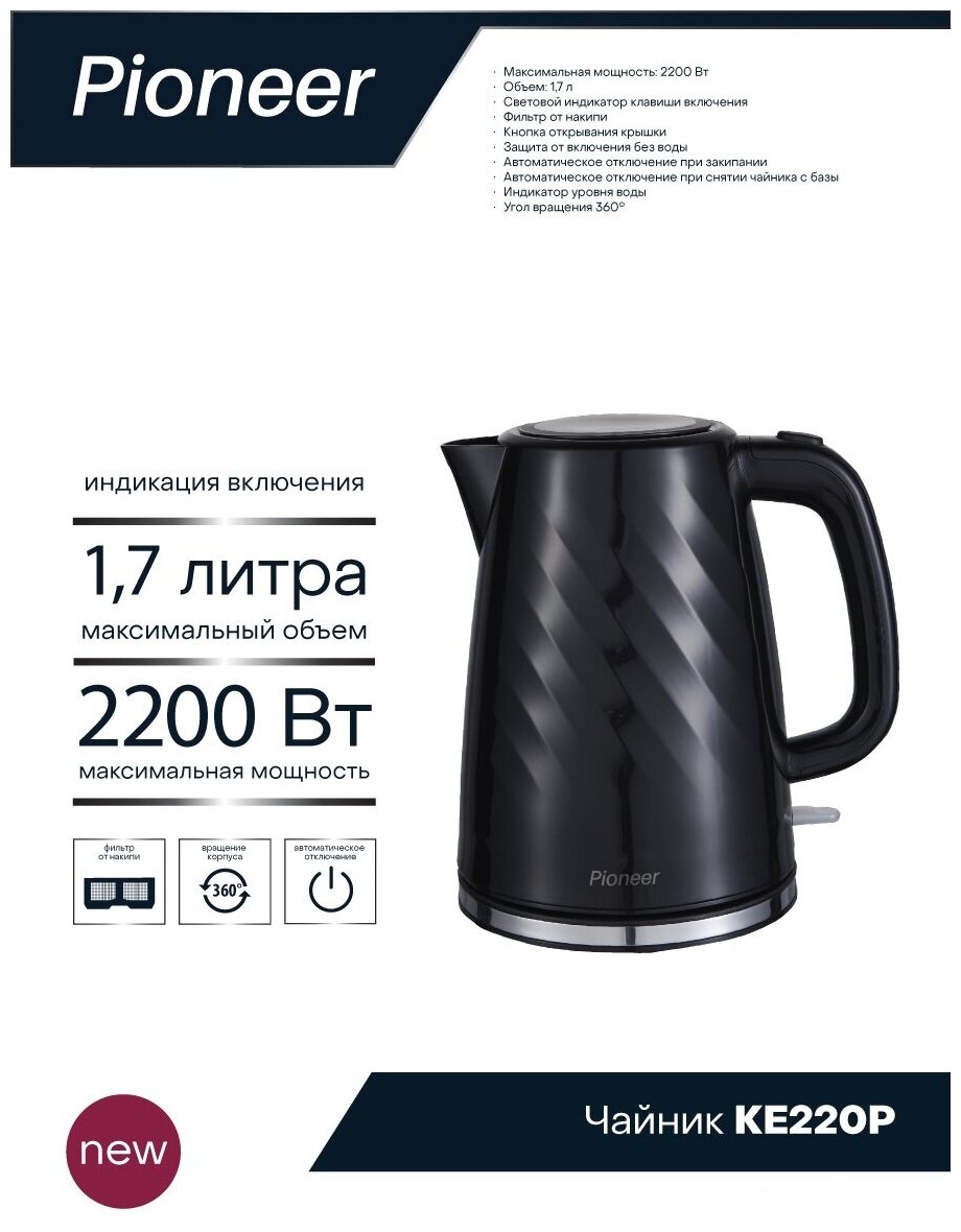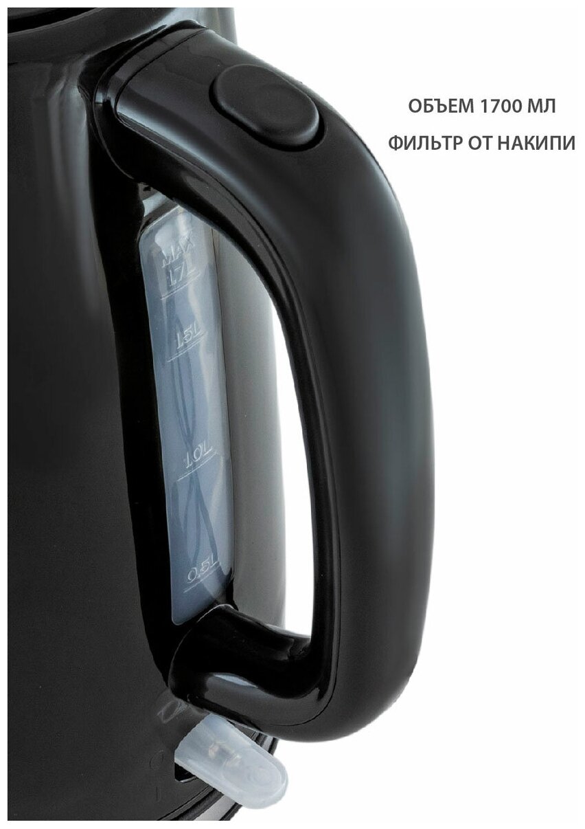 тип: чайник, материал корпуса: пластик, объем: 1.70 л, тип нагревательного элемента: закрытый, особенности: вращение на 360 градусов, индикатор уровня воды, индикация включения, фильтр