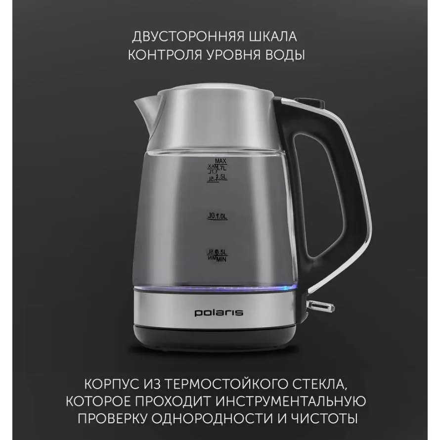 Английский контроллер Strix, обеспечивающий надежность и долговечность. : Корпус из высококачественного термостойкого стекла. : Инструментальная проверка однородности и чистоты стекла. : Яркая внутренняя подсветка. : Двусторонняя шкала контроля уровня воды. : Фильтр для очистки воды. : Автоматический и ручной выключатель. : Вращающийся корпус на 360⁰. : Скрытый нагревательный элемент. : Подключение через подставку. : Отсек для хранения шнура. : Блокировка включения без воды. : Защита от перегрева. : Вместимость: 1.7 л : Мощность: 1850-2150 Вт : Тип нагревательного элемента: скрытый : Тип корпуса: высококачественная нержавеющая сталь : Подключение через подставку: да : Термометка меняет цвет при нагревании: да : Вращающийся корпус на 360°: да : Напряжение питания: 220 : Тип управления: механическое : Цвет: стальной : Длина шнура: 69 : Вес нетто, кг: 1.12 : Вес брутто, кг: 1.52 ;