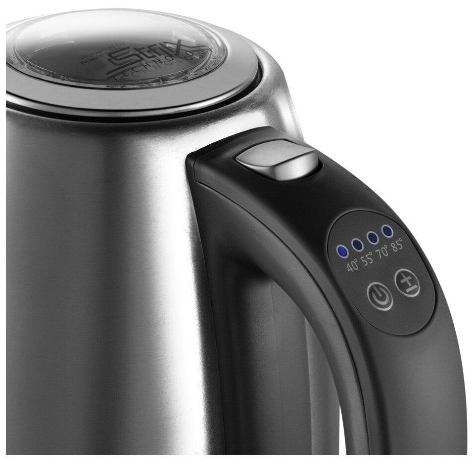 тип: чайник, материал корпуса: металл, объем: 1.70 л, тип нагревательного элемента: закрытая спираль, дополнительные функции: поддержание тепла, особенности: вращение на 360 градусов, индикатор уровня воды, фильтр, отсек для хранения шнура, управление со смартфона, Экосистема Умного дома: Умный дом Яндекса, Работает с Алисой