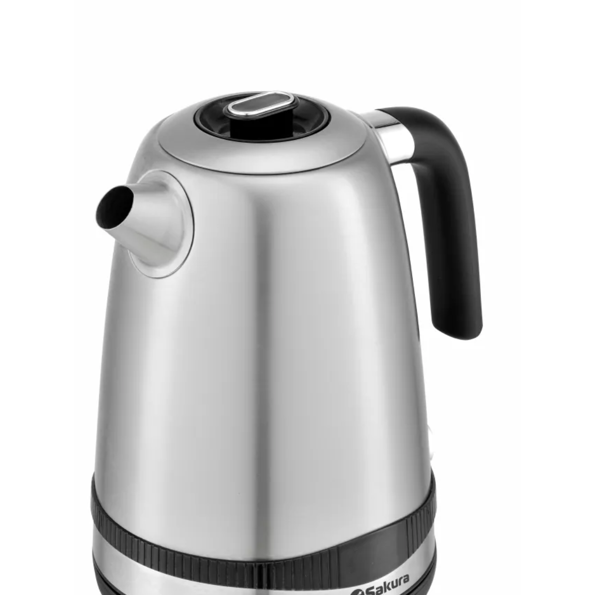 Основные характеристики Бренд SAKURA Цвет товара серебристый Тип чайник Объем 1.7 л Мощность 2200 Вт Тип нагревательного элемента закрытый Покрытие нагревательного элемента нержавеющая сталь Дополнительные функции поддержание температуры Безопасность отключение при снятии с подставки Дополнительные характеристики Особенности вращение на 360 градусов, дисплей, индикатор уровня воды, отсек для хранения шнура, съемная крышка Возможность выбора температуры есть Минимальная температура нагрева 40 °C Количество температурных режимов 7 Материал корпуса металл Длина сетевого шнура 0.7 м