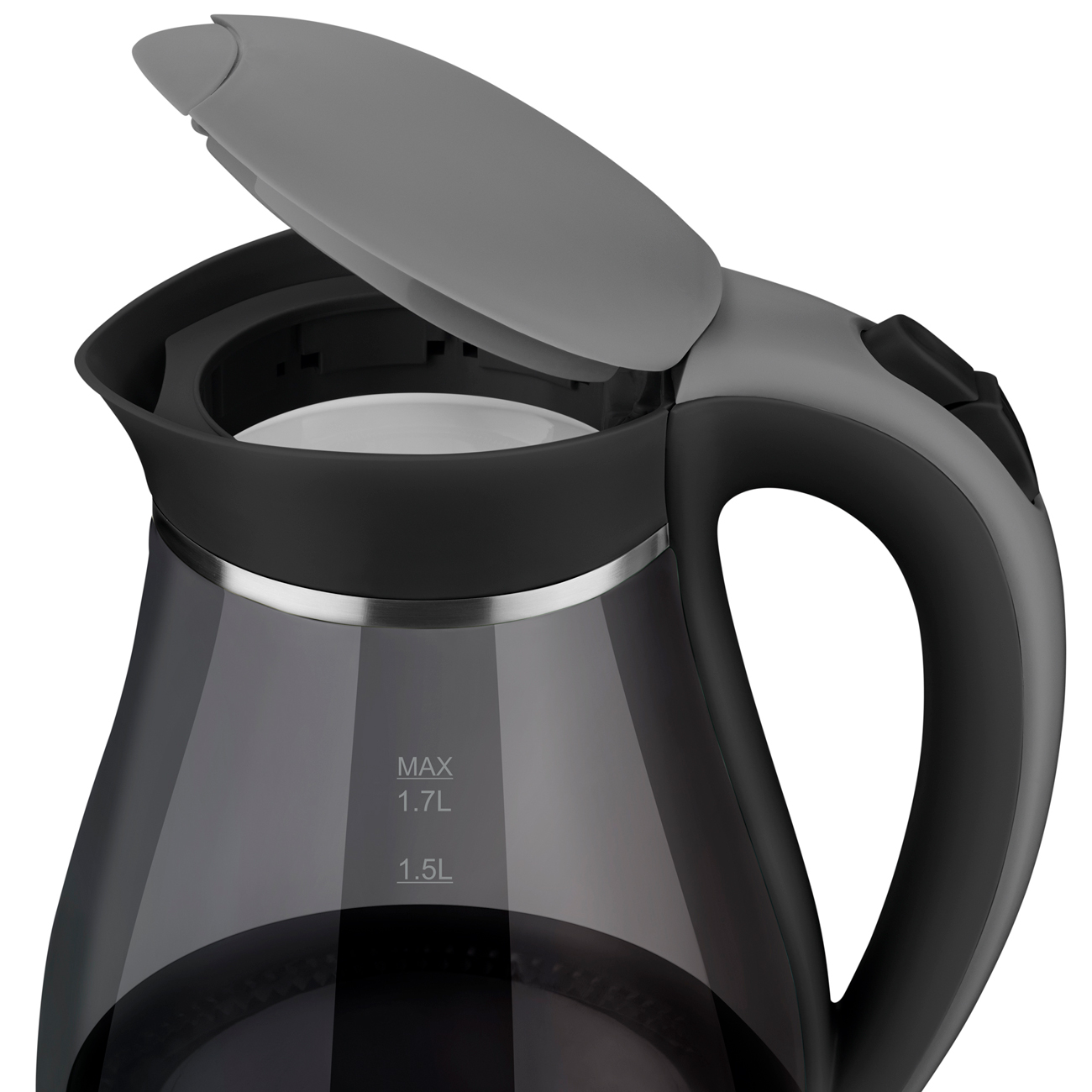 Тип электрочайник Объем 1.7 л Потребляемая мощность 2200 Вт Нагревательный элемент скрытый Покрытие нагревательного элемента нержавеющая сталь Индикатор уровня воды Открывание крышки кнопкой Подсветка Материал стекло