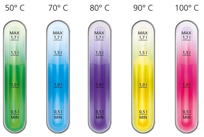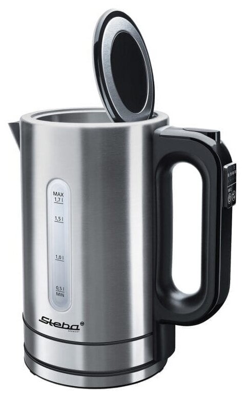 объем 1.7 л; мощность 2200 Вт; индикация включения, дисплей, сенсорное управление, поддержание тепла; закрытая спираль; установка на подставку в любом положении; стальной корпус; выбор температуры нагрева воды; подсветка корпуса; вес 1 кг