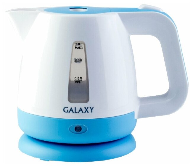 объем 1 л; мощность 900 Вт; индикация включения, поддержание тепла; закрытая спираль; установка на подставку в любом положении; пластиковый корпус; вес 1.2 кг
