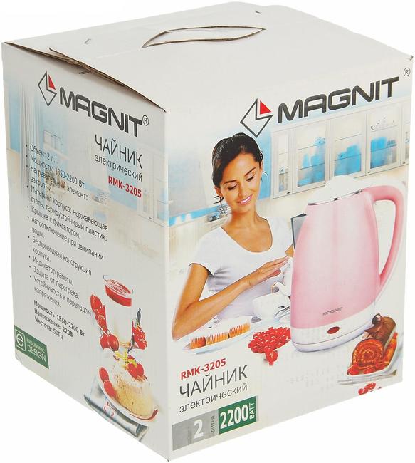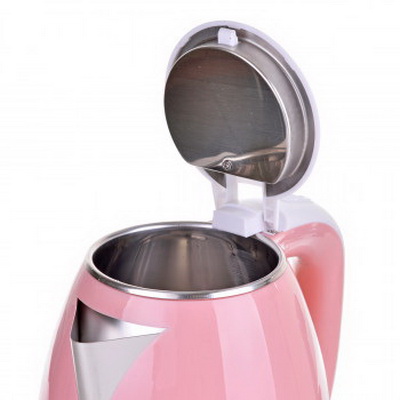 объем 2 л; мощность 2200 Вт; индикация включения; закрытая спираль; установка на подставку в любом положении; корпус из стали и пластика; ненагревающийся корпус