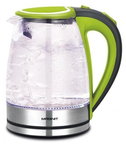 объем 2 л; мощность 2200 Вт; закрытая спираль; установка на подставку в любом положении; корпус из пластика и стекла; подсветка корпуса