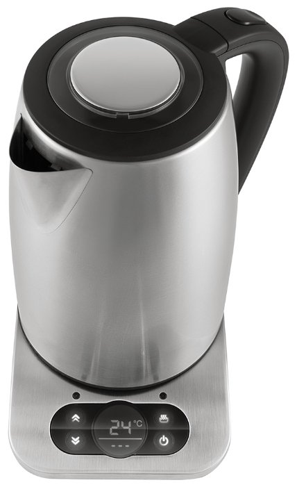 Классный металлический электрочайник с функцией поддержания температуры, управляется удобно и нагревается быстро. Второй месяц пользуемся и все ок, так что рекомендую! Достоинства: