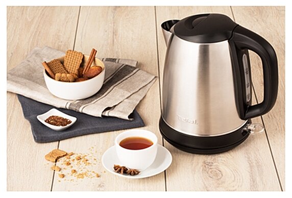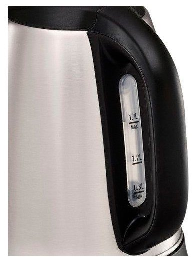 объем 1.7 л; мощность 2400 Вт; индикация включения; закрытая спираль; установка на подставку в любом положении; стальной корпус; вес 1.04 кг