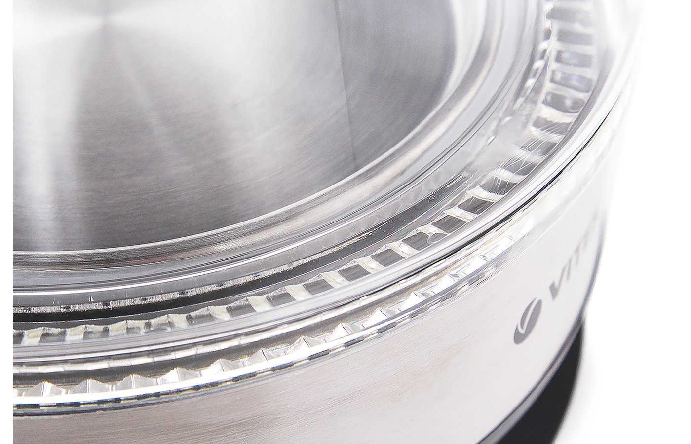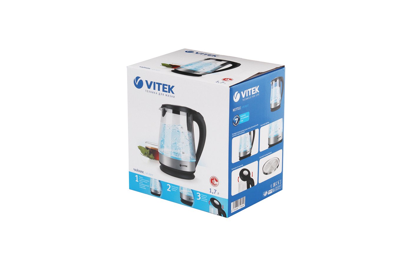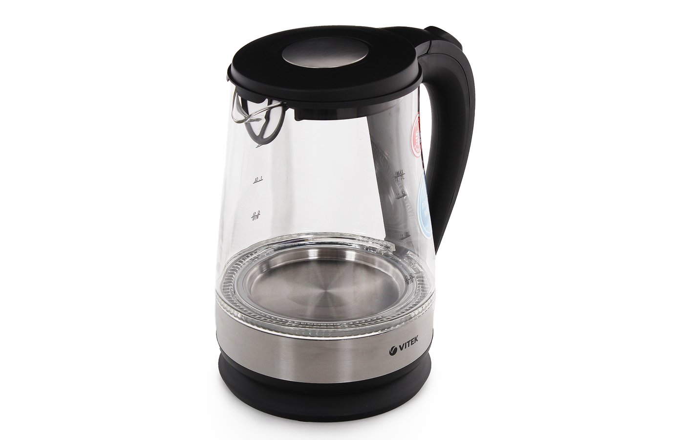 объем 1.7 л; мощность 2200 Вт; индикация включения; закрытая спираль; установка на подставку в любом положении; корпус из пластика и стекла; подсветка корпуса
