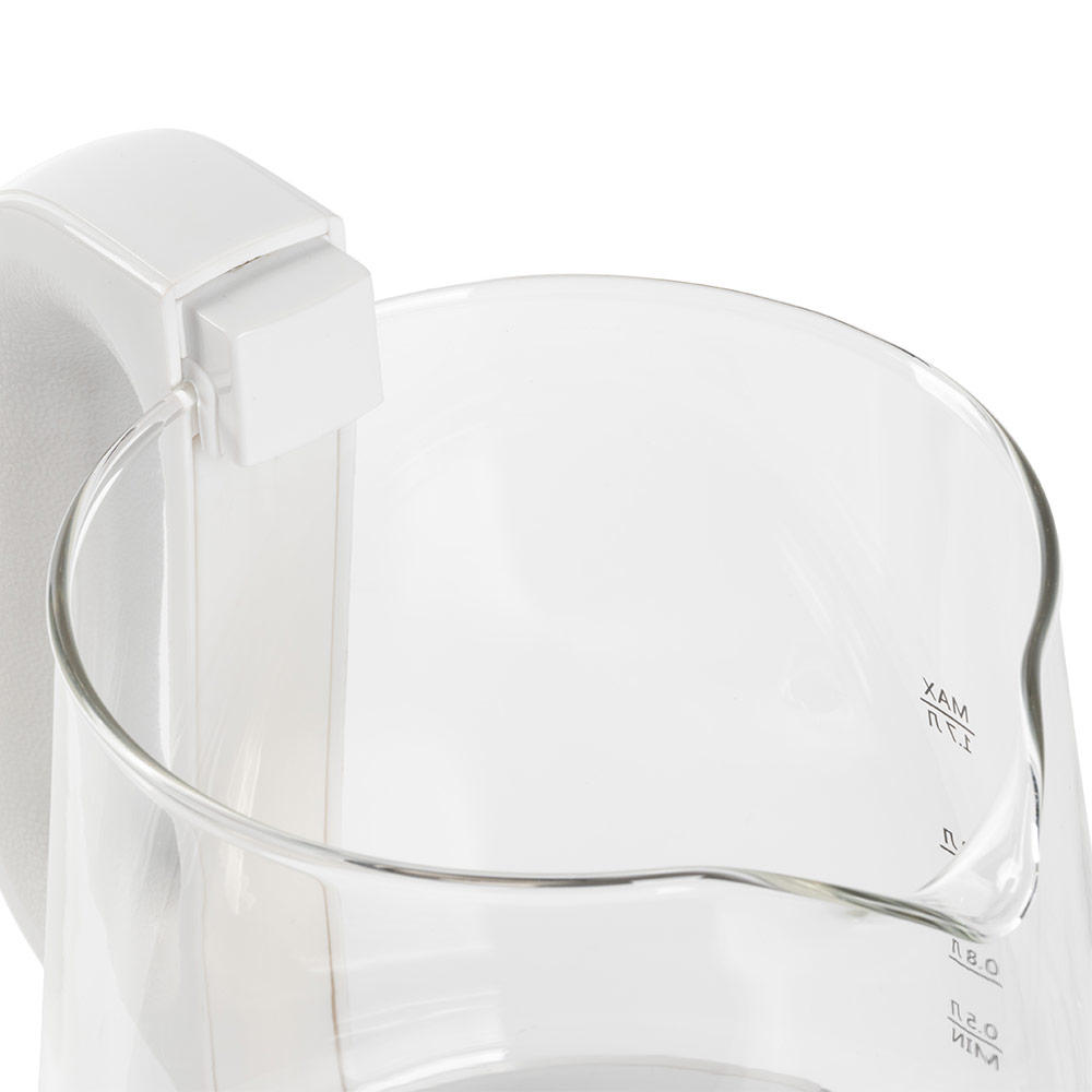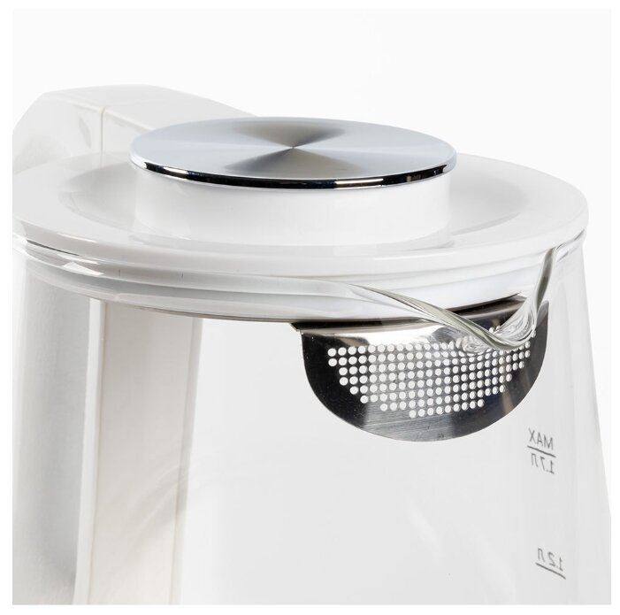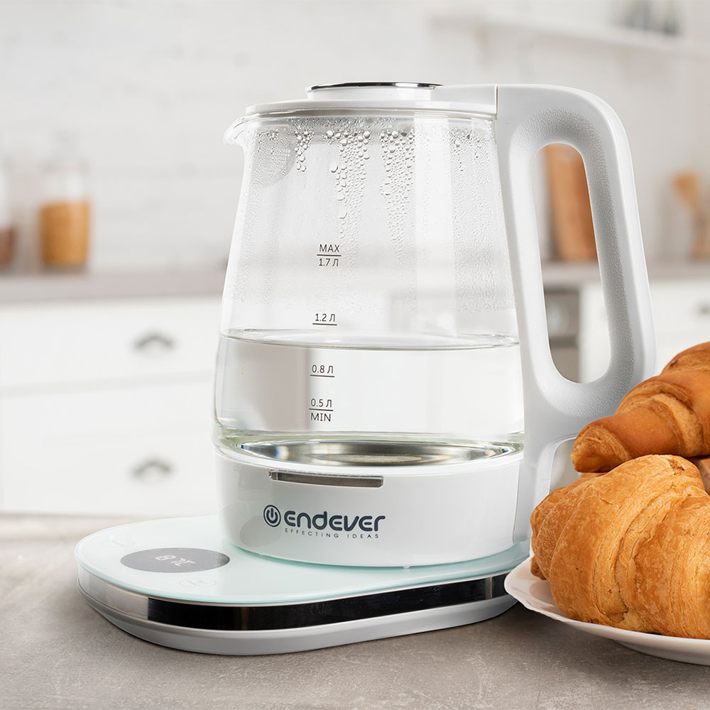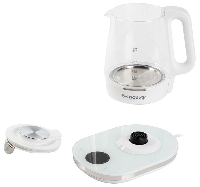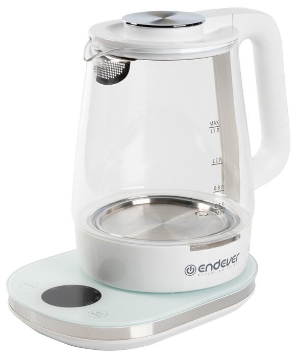 объем 1.7 л; мощность 1800 Вт; индикация включения, дисплей, сенсорное управление; закрытая спираль; установка на подставку в любом положении; корпус из пластика и стекла; выбор температуры нагрева воды; подсветка корпуса