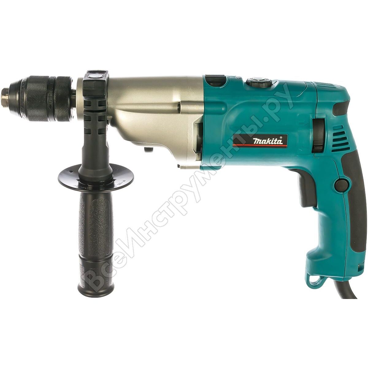 Двухскоростная ударная дрель Makita HP 2071 имеет два режима работы: сверление и ударное сверление. Новая система останавливает вращение при заклинивании сверла и сохраняет мощность при работе в режиме реверса. В комплекте идет дополнительная рукоятка - для более надежной и точной работы. Технические характеристики Makita HP 2071 Мощность, Вт 1010 Тип патрона быстрозажимной Крепление патрона 1/2 Число скоростей 2 Регулировка оборотов да Наличие удара да Наличие подсветки нет Наличие реверса да Max диаметр сверления (металл), мм 16 Мах диаметр сверления (дерево), мм 40 Мах диаметр сверления (кирпич), мм 20 Длина кабеля, м 2,5 Поддержание постоянных оборотов под нагрузкой нет Габариты, мм длина 362 Вес, кг 2,4 Max размер патрона, мм 13 Комплектация чемодан/кейс Частота вращения шпинделя, об/мин 1 скорость: 0-1200; 2 скорость: 0-2900 Частота ударов, уд/мин 1 скорость: 0-24000; 2 скорость: 0-58000 Автоматически отключающиеся при износе щетки нет