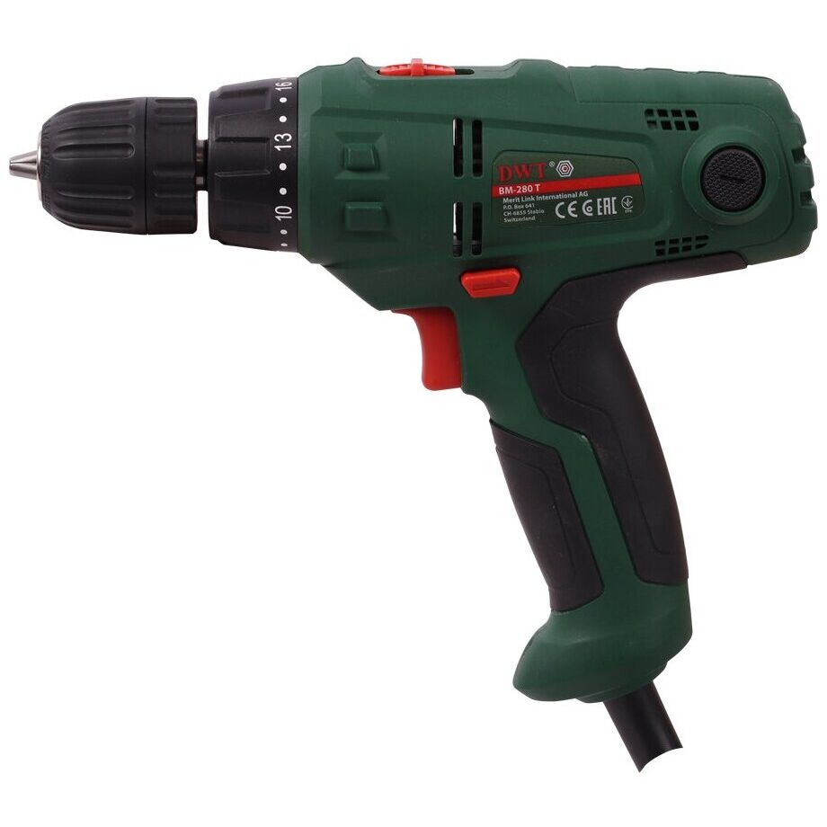 Общие характеристики; Тип инструмента; дрель-шуруповерт; Тип патрона; быстрозажимной; Количество скоростей работы; 2; Питание; от сети; Диаметр патрона; 0.8 – 10 мм; Макс. число оборотов холостого хода; 1400 об/мин; Максимальный крутящий момент; 22 Н·м; Потребляемая мощность; 280 Вт; Макс. диаметр сверления (дерево); 20 мм; Макс. диаметр сверления (металл); 10 мм; Функции и возможности; Функции; реверс, регулировка частоты вращения; Дополнительные режимы работы; сверление; Особенности конструкции; блокировка кнопки включения; Особенности и габариты; Бесщеточный двигатель; нет; Вес; 1.5 кг