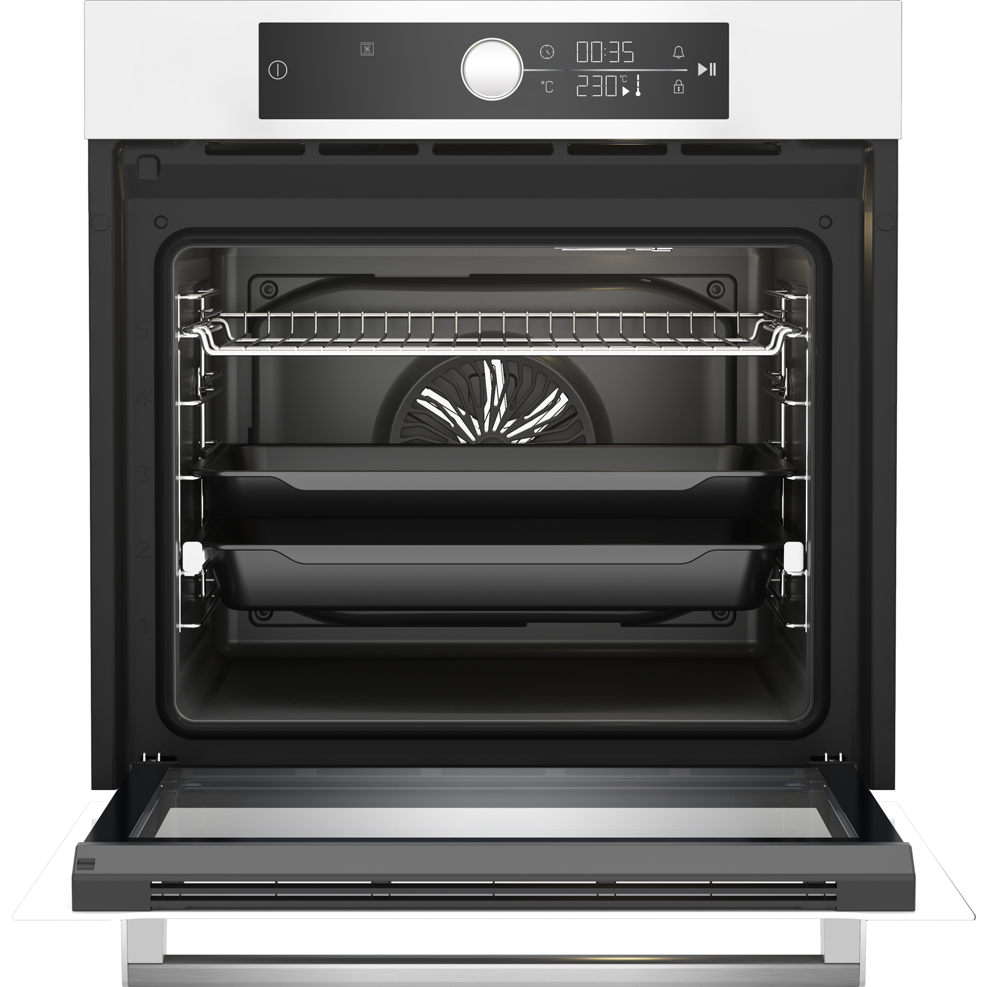 Общие характеристики: Бренд: Beko: Цвет: белый: Тип духовки: электрическая: Установка: независимая: Объем духовки: 72 л: Класс энергопотребления: A+: Мощность подключения: 3.3 кВт: Размеры (ВхШхГ): 59.5 х 59.4 x 56.7 см: Режимы: Режимы нагрева: верхний нагрев + нижний нагрев: Число автоматических программ: 13: Гриль: да: Тип гриля: электрический: Конвекция: да: Управление: Управление со смартфона: нет: Переключатели: поворотные: Особенности: Особенности конструкции: дисплей, телескопические направляющие: Дополнительные функции: Полностью стеклянная внутренняя дверца: Электроподжиг: нет: Газ-контроль: нет: Дверца духовки: откидная: Очистка духовки: гидролизная: Число стекол дверцы духовки: три: Безопасность: система защиты от детей;;