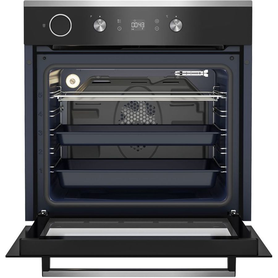 Тип духовки электрическая; Тип управления независимое; Переключатели поворотные/сенсорные; Утапливаемые переключатели да; Мощность подключения 2500 Вт; Класс энергоэффективности A; Объем духовки 71 л; Максимальная температура 250 °С; Внутреннее покрытие духовки эмаль легкой очистки; Очистка духовки каталитическая (задняя стенка); Конвекция есть; Гриль есть; Тип гриля электрический; Мощность гриля 2200 Вт; Особенности; Дисплей есть; Часы есть; Таймер есть; Тип таймера электронный; Электронный программатор есть; Многофункциональная духовка да; Количество программ духовки 9; Режимы духовки Верхний и нижний нагрев, верхний и нижний нагрев+вентилятор, нагрев кольцевым элементом, 3D приготовление, гриль, медленное приготовление, нижний нагрев, разморозка, приготовление с помощью пара.; Приготовление на пару есть; Объем емкости для воды 0.3 л; Вентилятор охлаждения есть; Открывание дверцы вниз; Полностью стеклянная внутренняя поверхность дверцы духовки да; Количество стекол в дверце 3; Освещение духовки есть; Тип о