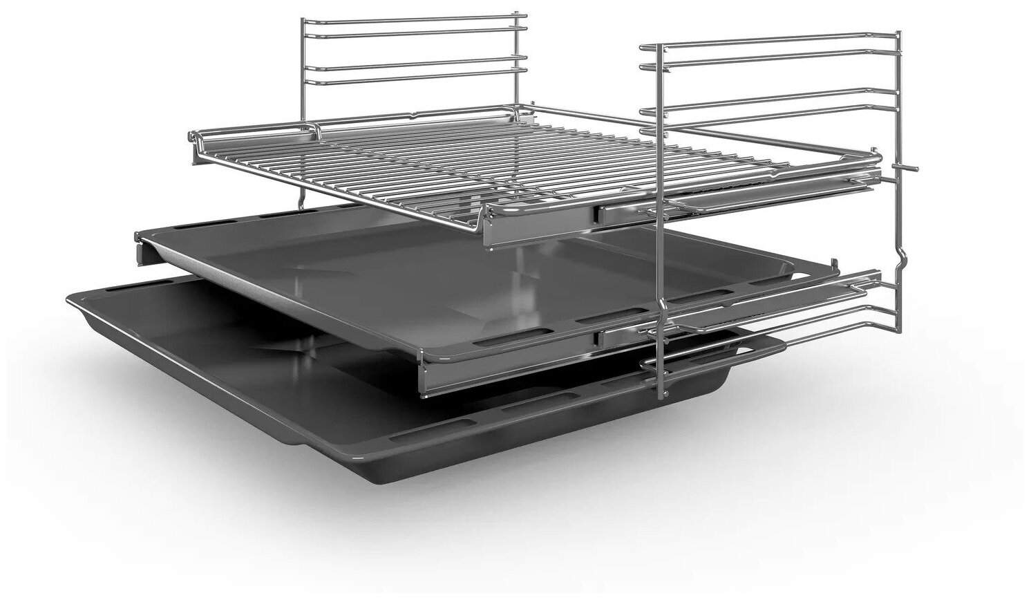 тип духовки: электрическая, установка: независимая, ширина: 59.40 см, конвекция, гриль, тип гриля: электрический, объем духовки: 66 л, количество стекол дверцы духовки: три, переключатели: сенсорные, поворотные, класс энергопотребления: A, особенности конструкции: подсветка камеры, телескопические направляющие, дисплей, термощуп, дополнительные функции: размораживание, таймер, высота: 59.50 см, максимальная температура: 275 °C, число режимов нагрева: 8, безопасность: защитное отключение, система защиты от детей