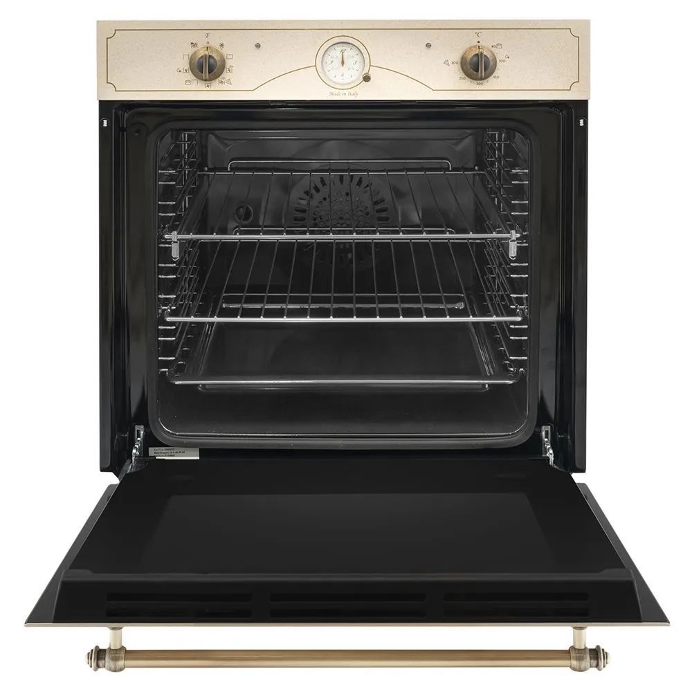 Функции: Количество режимов работы: 9: Подсветка духовки: LED: Очистка духовки: Очистка паром: Электроподжиг духовки: Автоматический: Электроподжиг гриля: Автоматический: Особенности духовки, плиты: Быстрый нагрев, Вентилятор охлаждения, Встроенные часы, Дизайн Ретро, Электромеханический вертел, Хромированные направляющие, Защитное покрытие от отпечатков пальцев: Системы защиты: Защита от перегрузки (автоматический предохранитель), Защита от перегрева: Режимы работы: Верхний + нижний нагрев + конвекция, Размораживание, Конвекция, Гриль + конвекция: Управление: Управление духовкой: Таймер: Тип управления: Механическое: Таймер: Звуковой: Основные: Объем духовки, л: 74: Тип питания: Электрический: Класс энергоэффективности: A: Макс. температура, °С: 300: Телескопические направляющие духовки: Да: Корпус: Тип установки: Независимая: Размеры, мм (ШхГхВ): 595х545х595: Внутреннее покрытие: Эмаль: Количество стекол дверцы духовки: 2: Направление открывания дверцы: Откидная: Вид кабеля питания: Кабель без вилки: Высота