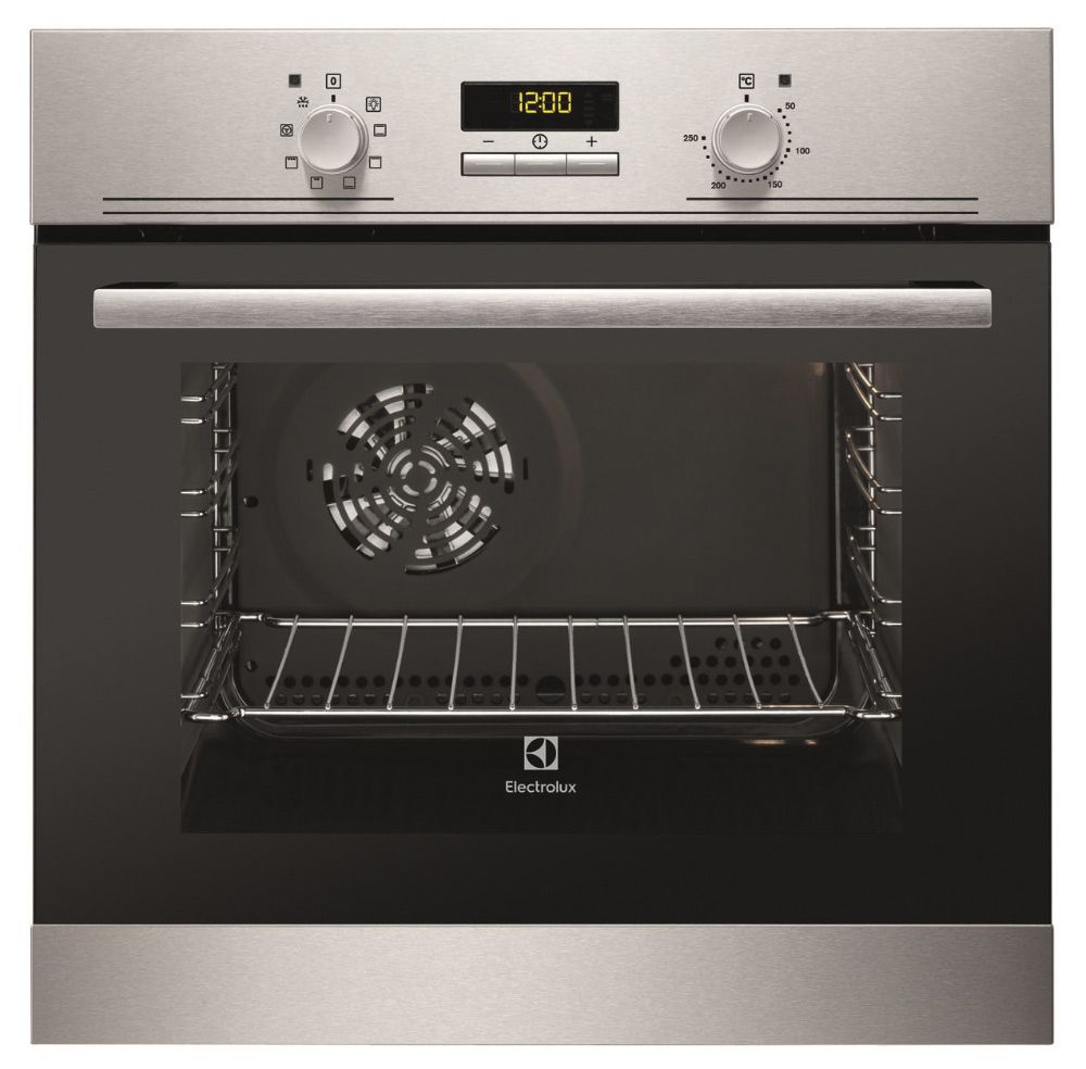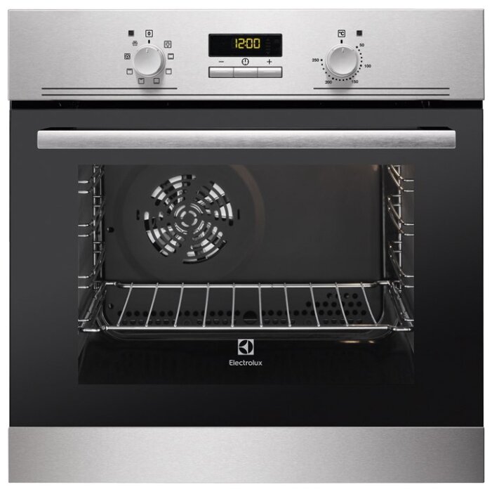 Встраиваемая электрическая духовка ELECTROLUX/ Электрическая духовка, основной цвет - нержавеющая сталь, стандартные переключатели, таймер отключения, отложенный старт, будильник, хромированные направляющие из нержавеющей стали, 2 стекла, каталитическая очистка, Польша