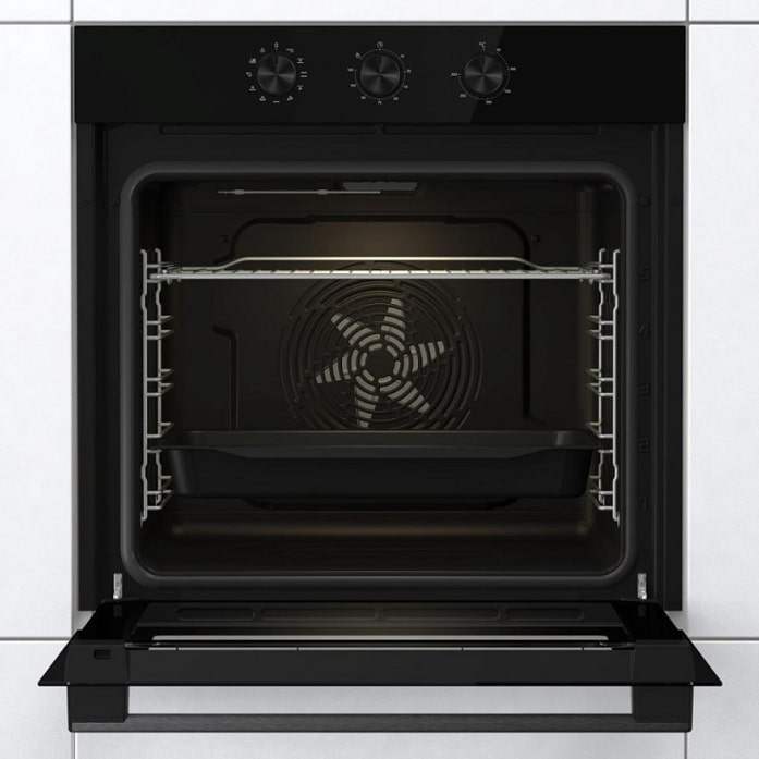 ОСНОВНЫЕ ХАРАКТЕРИСТИКИ : Тип : независимый : Способ подключения : электрический : Объем рабочей камеры, л : 77 : Габаритные размеры (ВxШxГ), см : 59.5 х 59.5 х 56.4 : Высота, см : 59.5 : Ширина, см : 59.5 : Глубина, см : 56.4 : Размеры ниши для встраивания (ВxШxГ), см : 59-60 х 56-56.4 х 55 : ДИЗАЙН : Дизайн : Essential : Материал панели управления : стекло : Цвет : черный : Цвет ручки дверцы : темная нержавеющая сталь : Освещение духовки : одна лампа : Шарнир дверцы : стандартный : ОСОБЕННОСТИ : Особенности : просторная духовка BigSpace : максимальная площадь приготовления SuperSize : Вариогриль PerfectGrill для равномерного нагрева : Да : HomeMade Plus (сводчатая форма потолка) : Есть : УПРАВЛЕНИЕ : Управление : механическое : Тип переключателей : поворотные : Форма переключателей : утапливаемые : Таймер : механический : с функцией отключения : РЕЖИМЫ РАБОТЫ : Количество режимов : 11 : Классический нагрев (сверху и снизу) : Есть : Классический нагрев (сверху и снизу) + работа вентилятора : Есть : Вентиляци