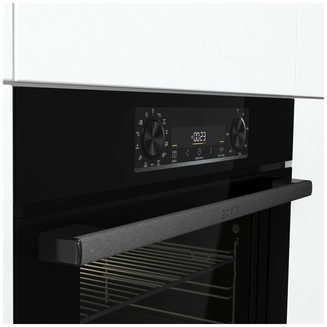 Тип духовки электрическая; Установка независимая; Объем духовки 77 л; Класс энергопотребления A; Мощность подключения 3.5 кВт; Размеры (ВхШхГ) 59.5 х 59.5 x 56.4 см; Максимальная температура 300 °C; Режимы; Режимы нагрева большой гриль, верхний нагрев, конвекция, нижний нагрев; Функция СВЧ нет; Гриль да; Тип гриля электрический; Конвекция да; Управление; Управление со смартфона нет; Переключатели поворотные; Тип поворотных переключателей механические; Утапливаемые переключатели да; Сенсорный дисплей есть; Особенности; Особенности конструкции дисплей, подсветка камеры, телескопические направляющие, часы, эмаль легкой чистки; Дополнительные функции размораживание, таймер; Электроподжиг нет; Газ-контроль нет; Дверца духовки откидная; Очистка духовки гидролизная; Число стекол дверцы духовки два; Уникальные технологии HomeMade Plus; Подробная комплектация глубокий эмалированный противень, мелкий эмалированный противень, решетка