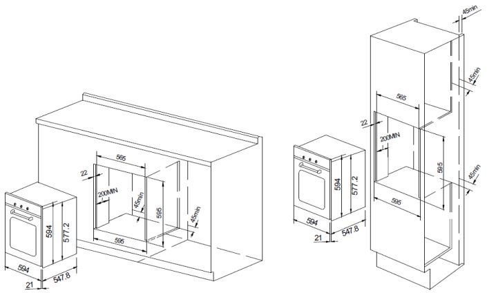 независимая установка; ШхГхВ: 59.40х57х59.40 см; объем 73 л; 5 режимов нагрева; максимальная температура 250°C; поворотные переключатели; конвекция, гриль; класс энергопотребления: A
