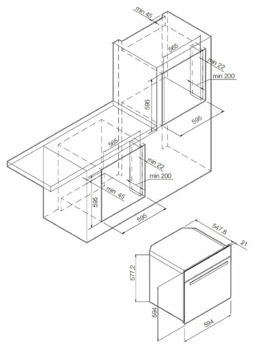 независимая установка; ШхГхВ: 59.40х56.80х59.40 см; объем 73 л; 10 режимов нагрева; максимальная температура 250°C; сенсорные переключатели; конвекция, гриль; защита от детей; сенсорный дисплей