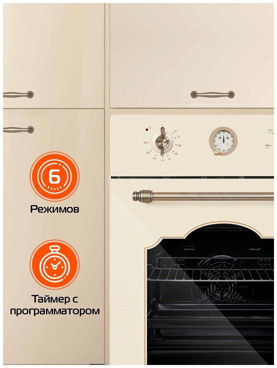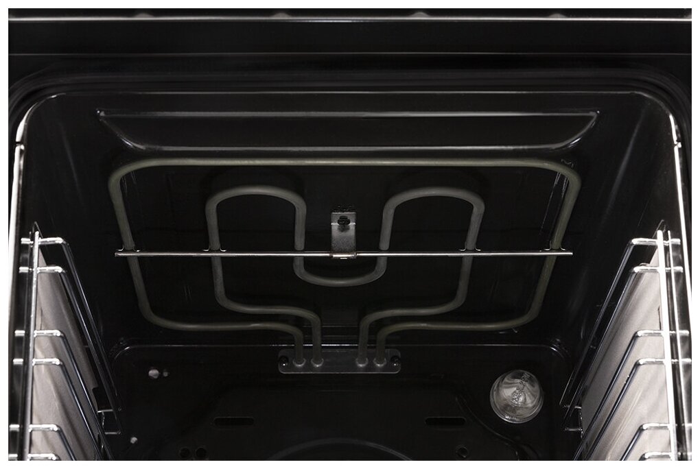 - Режимы нагрева духовки: большой гриль, верхний нагрев, верхний нагрев + нижний нагрев, гриль + конвекция, конвекция, нижний