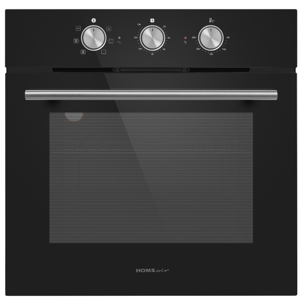 Дизайн модели дополнен утапливаемыми регуляторами PUSH PULL увеличенного диаметра. Серия духовых шкафов HOMSair OEF606 - это сочетание высокого качества сборки, эксклюзивного дизайна и расширенного функционала.: Управление происходит при помощи утапливаемых ручек PUSH PULL, увеличенного размера для комфортного использования, которые легко убираются внутрь корпуса после использования, что делает уход за лицевой панелью шкафа максимально удобным. : Дверца духового шкафа оснащена тройным стеклом - это гарантия медленного нагревания внешнего стекла, что создает холодный фронт и делает процесс приготовления безопасным исключая возможность ожога при касании. : Духовой шкаф оснащен разнообразным набором функций для приготовления:: 1. Подсветка. : Яркое внутреннее освещение делает процесс приготовления блюд ещё приятнее. Вы всегда сможете видеть состояние готовящихся блюд, контролировать их готовность, даже не открывая шкафа.: 2. Размораживание. В данном режиме духовой шкаф осуществляет усиленную циркуляцию воздуха в