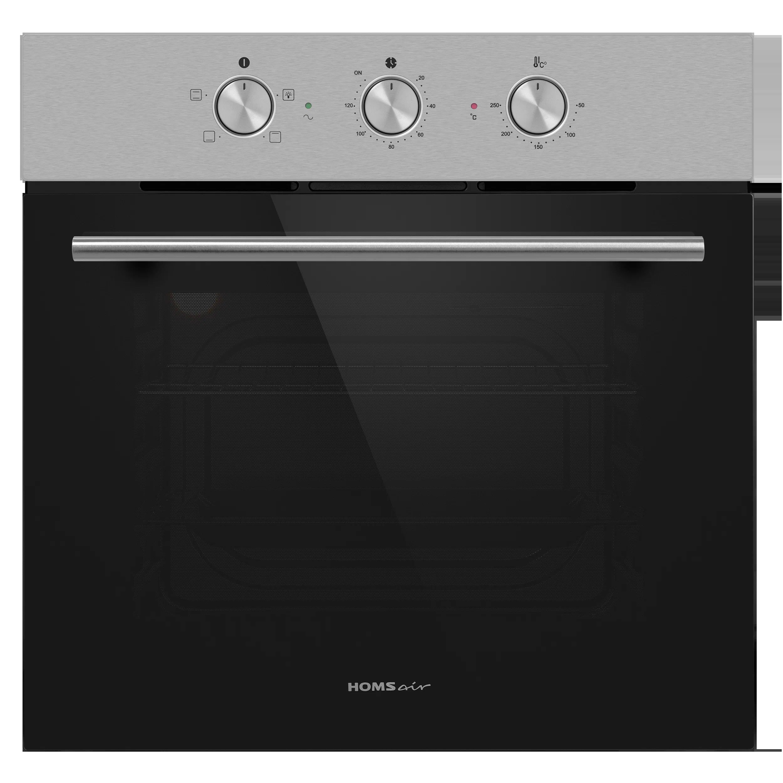 Управление: Управление духовкой: Утапливаемые переключатели: Тип управления: Механическое: Управление со смартфона: Нет: Таймер: Звуковой: Общие: Страна-изготовитель: Китай: Тип: Духовой шкаф: Корпус: Тип установки: Независимая: Размеры, мм (ШхГхВ): 595х525х590: Внутреннее покрытие: Эмаль: Количество стекол дверцы духовки: 3: Ширина встраивания, см: 60: Направление открывания дверцы: Вперед: Высота, см: 59: Ширина, см: 59.5: Глубина, см: 52.5: Функции: Количество режимов работы: 3: Системы защиты: Защита от перегрева: Защита от детей: Нет: Подсветка духовки: Есть: Очистка духовки: Очистка паром: Особенности духовки, плиты: Вентилятор охлаждения, Полностью стеклянная внутренняя дверца, Хромированные направляющие: Основные: Объем духовки, л: 60: Тип питания: Электрический: Потребляемая мощность, Вт: 2350: Класс энергоэффективности: A: Макс. температура, °С: 250: Телескопические направляющие духовки: Нет: Дополнительные: Бренд: HOMSair: Цвет: Серебристый;;