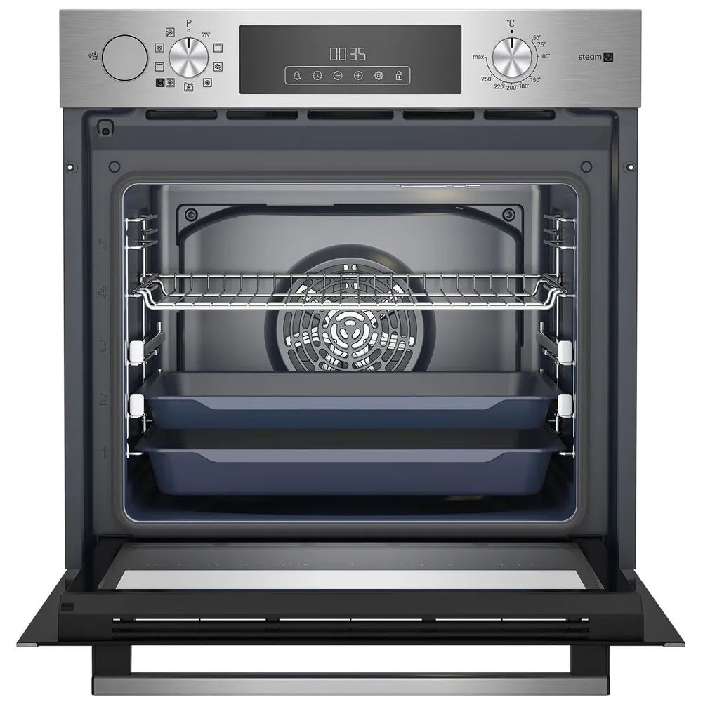 Тип установки: Независимая: Внутреннее покрытие: Эмаль: Количество стекол дверцы духовки: 3: Размер ниши, мм: 60х560х550: Ширина встраивания, см: 56: Направление открывания дверцы: Откидная: Высота, см: 59.5: Ширина, см: 59.4: Глубина, см: 56.7: Вес, кг: 33.2: Функции: Количество режимов работы: 9: Особенности духовки, плиты: Дисплей, Встроенные часы: Системы защиты: Блокировка от детей: Защита от детей: Да: Подсветка духовки: Есть: Телескопические направляющие: На 2-х уровнях: Очистка духовки: Очистка паром: Режимы работы: Верхний + нижний нагрев, Нижний нагрев + конвекция, Конвекция, Размораживание, Гриль: Общие: Тип: Духовой шкаф: нержавеющая сталь: Размеры, мм: 595х594х567: Страна-изготовитель: Турция: Управление: Управление духовкой: Дисплей, Утапливаемые переключатели, Таймер: Тип управления: Электронное: Управление со смартфона: Нет: Таймер: Электронный: Индикация: Выбранная мощность: Основные: Объем духовки, л: 72: Тип питания: Электрический: Потребляемая мощность, Вт: 3300: Класс энергоэффективности: