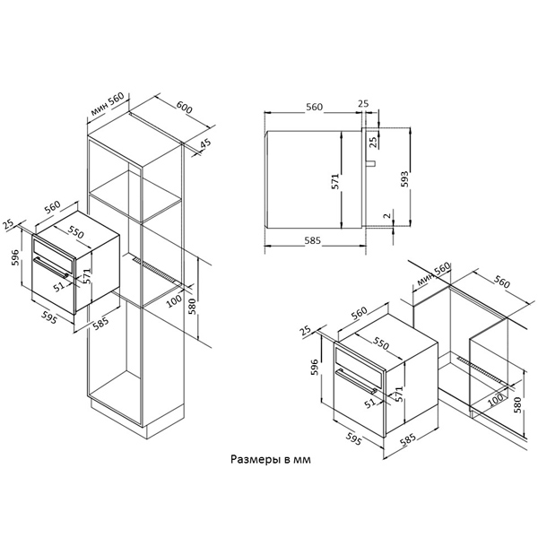 независимая установка; ШхГхВ: 59.50х56х59.80 см; объем 67 л; 6 режимов нагрева; каталитическая очистка; утапливаемые переключатели; конвекция, гриль; сенсорный дисплей