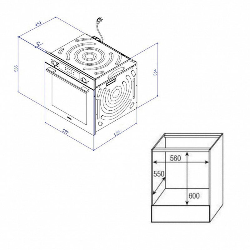 ОБЩИЕ ХАРАКТЕРИСТИКИ: Размер: 60 см: Вид: полноразмерная: Тип духовки: электрическая: Тип гриля: электрический: Ширина, см: 59.7: Высота, см: 58.5: Глубина, см: 55.5: Габариты ниши для встраивания (В х Ш х Г), см: 60 х 56 х 55: Объем, л: 69: ДИЗАЙН: Коллекция: Crystal: Цвет: черный: Фурнитура: черный: Освещение: галогенное: Количество ламп: 1: УПРАВЛЕНИЕ: Тип управления: электронное: Переключатели: утапливаемые: Программатор: сенсорный: Дисплей: Есть: Функции таймера: звуковой сигнал: РЕЖИМЫ И ФУНКЦИИ: Количество режимов: 7: Традиционный нагрев (верхний + нижний нагрев): есть: Нижний нагрев + конвекция: есть: Верхний нагрев + конвекция: есть: Конвекционный нагрев: есть: Кольцевой нагрев с конвекцией / Горячий воздух: есть: Конвекционное размораживание (вентилятор без нагрева): есть: Большой гриль (верхний нагрев + гриль): есть: ОЧИСТКА: Тип очистки: каталитическая: очистка паром Steam Cleaning: Эмаль: легкой очистки: ТЕХНИЧЕСКИЕ ХАРАКТЕРИСТИКИ: Класс энергопотребления: A+: Мощность подключения, кВт: 2.4: Напр