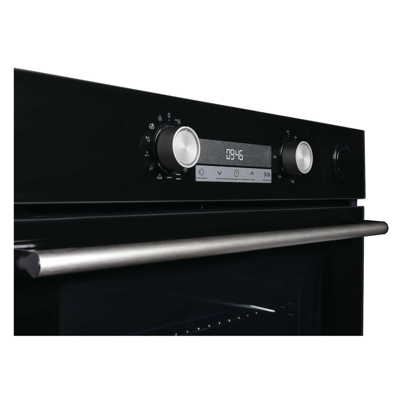 Общие характеристики: Цвет: черный: Тип духовки: электрическая: Установка: независимая: Объем духовки: 77 л: Класс энергопотребления: A: Мощность подключения: 3.5 кВт: Ширина: 59.5 см: Высота: 59.5 см: Глубина: 56.4 см: Максимальная температура: 300 °C: Режимы: Режимы нагрева: большой гриль, верхний нагрев + нижний нагрев, конвекция, Размораживание, Турбо гриль: Функция СВЧ: нет: Гриль: да: Тип гриля: электрический: Конвекция: да: Управление: Управление со смартфона: нет: Переключатели: поворотные, сенсорные: Тип поворотных переключателей: тактовые: Утапливаемые переключатели: да: Сенсорный дисплей: есть: Особенности: Особенности конструкции: дисплей, подсветка камеры, телескопические направляющие, термощуп, часы, эмаль легкой чистки: Дополнительные функции: быстрый нагрев, поддержание тепла, размораживание, таймер, Термощуп: Электроподжиг: нет: Газ-контроль: нет: Дверца духовки: откидная: Очистка духовки: гидролизная: Число стекол дверцы духовки: три: Безопасность: защитное отключение, система защиты от дете