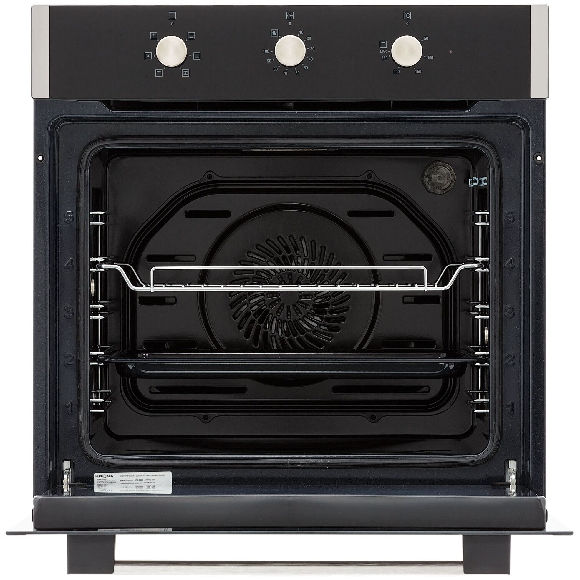 Общие характеристики: Цвет: черный: Тип духовки: электрическая: Установка: независимая: Объем духовки: 66 л: Класс энергопотребления: A: Мощность подключения: 2.65 кВт: Ширина: 59.5 см: Высота: 59.5 см: Глубина: 56.7 см: Максимальная температура: 285 °C: Режимы: Режимы нагрева: нижний нагрев, верхний нагрев + нижний нагрев, гриль + конвекция, большой гриль, конвекция: Число автоматических программ: 6: Функция СВЧ: нет: Гриль: да: Тип гриля: электрический: Мощность гриля: 1400 Вт: Конвекция: да: Управление: Управление со смартфона: нет: Переключатели: поворотные: Тип поворотных переключателей: механические: Особенности: Особенности конструкции: эмаль легкой чистки, подсветка камеры: Дополнительные функции: таймер: Дверца духовки: откидная: Очистка духовки: гидролизная: Число стекол дверцы духовки: два: Безопасность: защитное отключение, тангенциальное охлаждение;
