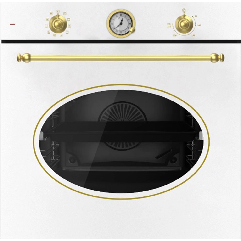 Общие данные: Коллекция: Classic: Тип духовки: электрическая: Ширина, см: 59.5: Высота, см: 59.5: Глубина, см: 56.3: Функции: Таймер: механический: Дополнительные функции: Эмаль легкой очистки: да: Съемная дверца духового шкафа: да: Съемное внутреннее стекло: да: Энергоэффективность: Класс энергопотребления: A: Преимущества: Тип управления: поворотные: Телескопические направляющие: 1 уровневые: Доводчик двери: нет: Очистка духовки: гидролизная: Количество стекол дверцы: 3: Основная информация: Объем духового шкафа, л: 80: Максимальная температура, °C: 255: Количество режимов: 10: Цвет: белый: Цвет фурнитуры: бронзовый: Режимы работы: Турбо режим: да: Нижний нагрев: да: Традиционный нагрев: да: Разморозка: да: Традиционный нагрев с конвекцией: да: Нижний нагрев + турбо: да: Верхний нагрев с конвекцией: да: Освещение: Освещение: да: Комплектация: Длина сетевого шнура: 120 см: Направляющие для противней: хромированные, съемные: Решетка для гриля: да: Стандартный противень: да: Глубокий противень: да;