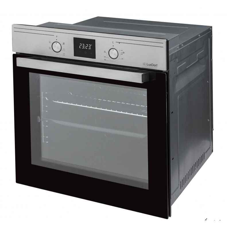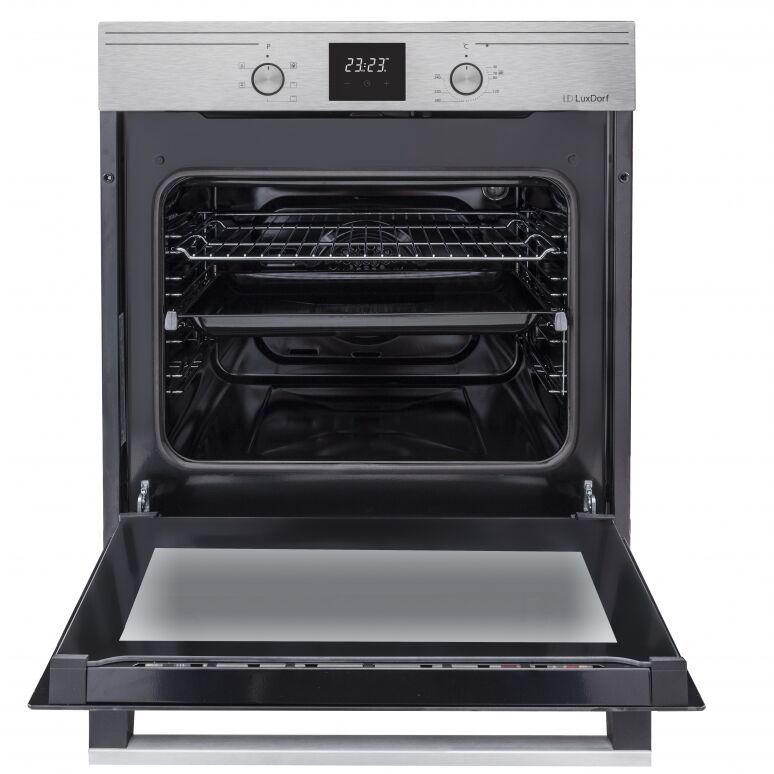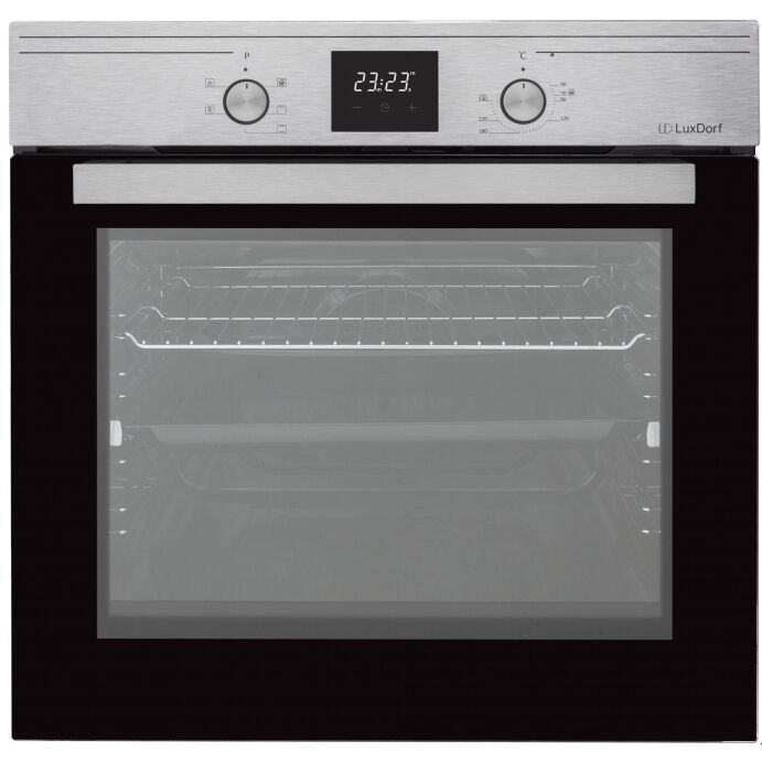 Общие параметры; Тип ; электрический духовой шкаф; Модель; LuxDorf B6EM56050; Основной цвет; серебристый; Дополнительный цвет; черный; Основные Характеристики: ; Установка ; независимый; Объем духовки ; 58 л; Материал панели управления; нержавеющая сталь; Часы; есть; Минимальная температура; 40 °C; Максимальная температура; 240 °C; Вентилятор охлаждения ; есть; Очистка духовки ; очистка паром; Функции и режимы; Количество режимов работы/автопрограмм; 5; Режимы работы духовки; нижний + верхний нагрев, верхний нагрев, верхний + нижний нагрев + конвекция; Функция СВЧ ; нет; Гриль ; нет; Конвекция ; есть; Программа размораживания ; нет; Приготовление при помощи пара ; нет; Добавление воды для готовки с паром; нет; Блокировка от детей ; есть; Доводчик двери; нет; Управление; Вид управления; поворотный механизм; Утапливаемые поворотные переключатели ; есть; Дисплей; есть; Таймер ; есть; Тип таймера; независимый (только оповещение); Управление со смартфона; нет; Приложение для управления; нет; Голосовой помощник; н