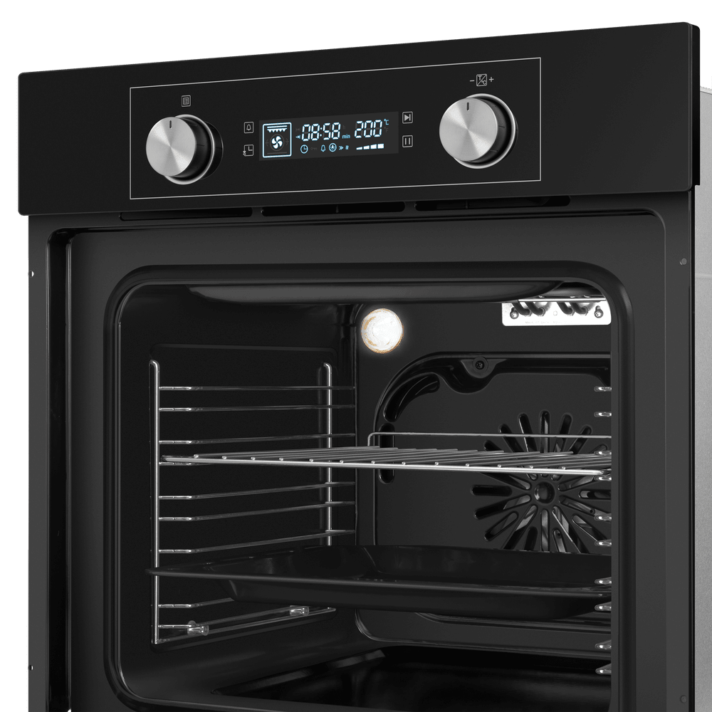 Тип духового шкафа Электрический: Количество режимов работы 6: Тип очистки Гидролизная: Тип гриля Электрический: Максимальная температура, С 250: Таймер да: Защита от детей да: Гриль да: Освещение духовки да: Утапливаемые ручки управления Push Pull да: Внутреннее покрытие Эмаль легкой очистки: Количество стекол в дверце 3: Материал фасада Стекло: Цвет Черный: Цвет фурнитуры Нержавеющая сталь: Ширина, мм 595: Высота, мм 590: Глубина, мм 525: Длина шнура, см 107: Вес товара без упаковки (нетто), кг 30,74: Вес товара (брутто), кг 33,78: Страна Китай : Сетевой кабель Без вилки;;