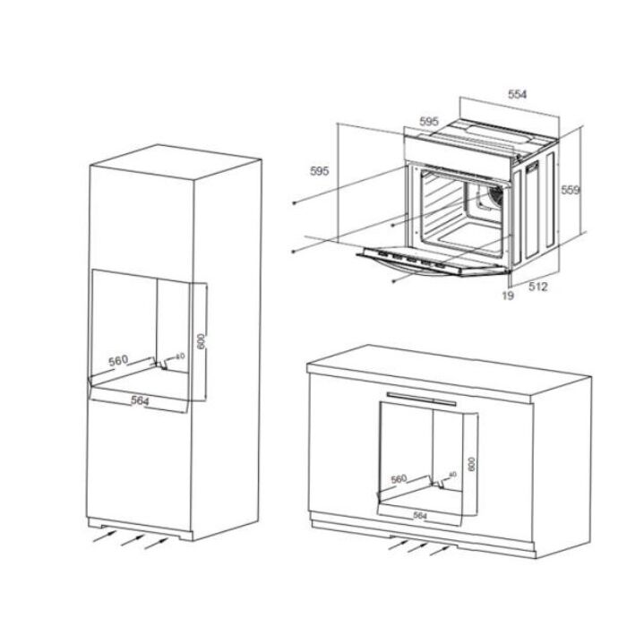 Основное: Тип электрическая: Органы управления сенсоры: Объем 56 л: Минимальная температура 50 °C: Максимальная температура 250 °C: Функции и возможности: Режимы готовки гриль: Кол-во режимов 4 шт: Функции ; термостат таймер автоматическое отключение защита от детей Дверца: Открывание сверху вниз: Кол-во стекол дверцы 2: Общее: Направляющие противней решетчатые: Класс энергопотребления A: Мощность подключения 2.35 кВт: Габариты (ВхШхГ) 59.5x59.5x53.1 см: Размеры для встраивания (ВхШхГ) 600x564x560 мм;;;