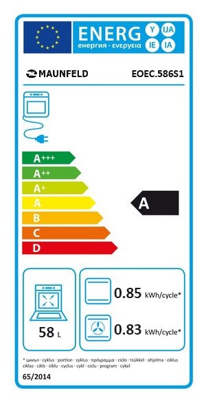 независимая установка; ширина: 60 см; объем 58 л; 7 режимов нагрева; максимальная температура 280°C; гидролизная очистка; поворотные переключатели; конвекция, гриль; класс энергопотребления: A