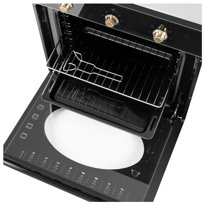Духовой шкаф очень стильный за такие деньги вы получаете ее только один из элементов приготовлении блюд, но и стильный элемент на вашей кухне.
