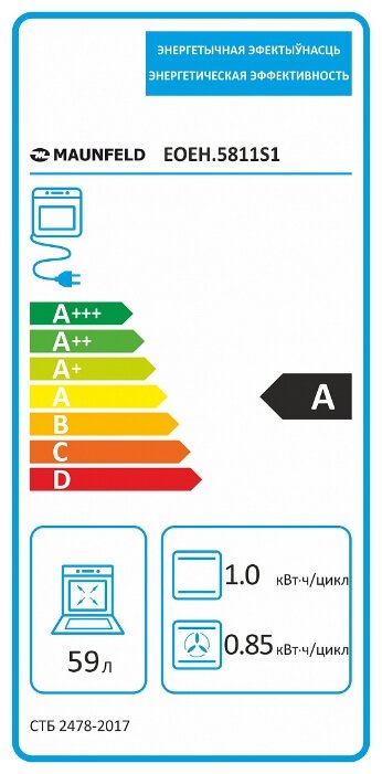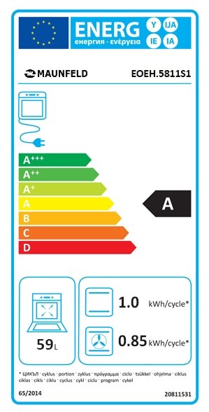 независимая установка; ширина: 60 см; объем 58 л; 11 режимов нагрева; максимальная температура 300°C; каталитическая очистка; сенсорные переключатели; конвекция, гриль; класс энергопотребления: A; сенсорный дисплей