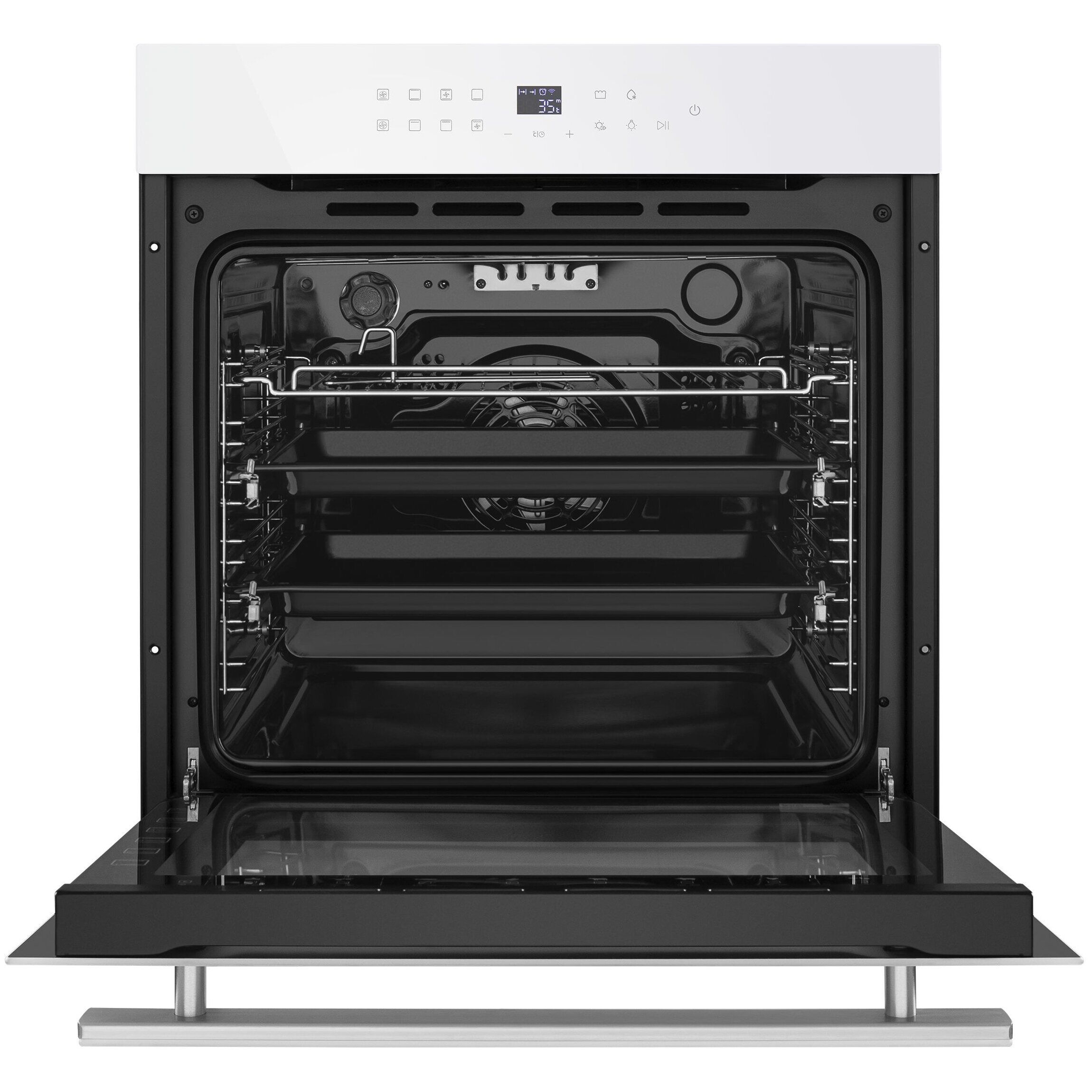 Общие характеристики: Тип духовки: электрическая: Установка: независимая: Объем духовки: 76 л: Класс энергопотребления: A: Размеры (ВхШхГ): 59.5 х 59.5 x 56.7 см: Максимальная температура: 250 °C: Режимы: Режимы нагрева: нижний нагрев, верхний нагрев, верхний нагрев + нижний нагрев, нижний нагрев + конвекция, гриль + конвекция, большой гриль, малый гриль, конвекция: Число автоматических программ: 11: Гриль: да: Тип гриля: электрический: Мощность гриля: 1000 Вт: Конвекция: да: Управление: Переключатели: сенсорные: Особенности: Особенности конструкции: эмаль легкой чистки, подсветка камеры, телескопические направляющие, дисплей: Дополнительные функции: размораживание, таймер: Электроподжиг: нет: Газ-контроль: нет: Дверца духовки: откидная: Число стекол дверцы духовки: три: Часы: есть: Подробная комплектация: 2 противня: Дополнительная информация: тип часов: электронные;;;
