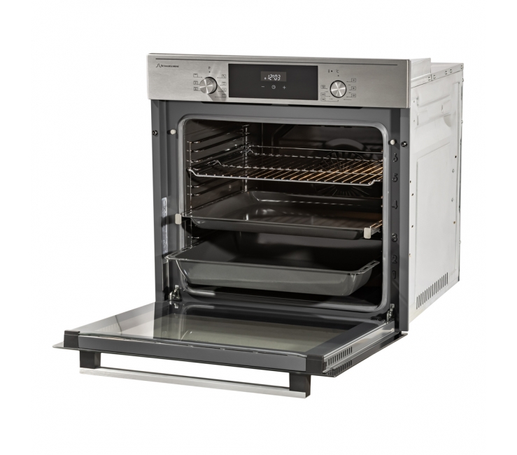 независимая установка; ШхГхВ: 59.50х56.50х59.50 см; объем 80 л; 8 режимов нагрева; максимальная температура 240°C; гидролизная очистка; утапливаемые переключатели; конвекция, гриль; класс энергопотребления: A; сенсорный дисплей