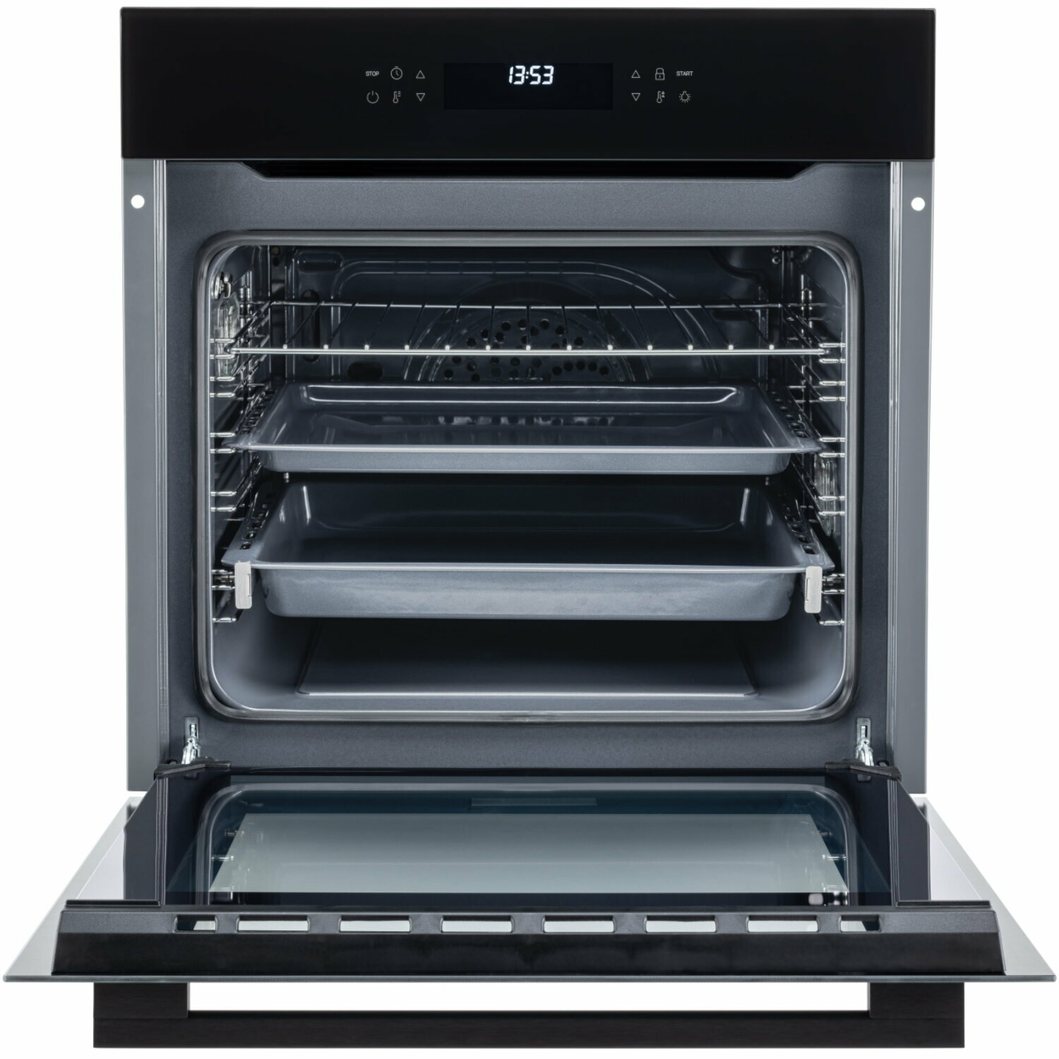 Общие характеристики: Цвет: черный: Тип духовки: электрическая: Установка: независимая: Объем духовки: 73 л: Класс энергопотребления: A: Мощность подключения: 3.378 кВт: Ширина: 59.5 см: Высота: 59.5 см: Глубина: 59.5 см: Максимальная температура: 250 °C: Режимы: Режимы нагрева: большой гриль, верхний нагрев, верхний нагрев + нижний нагрев, гриль + конвекция, конвекция, нижний нагрев: Число автоматических программ: 11: Функция СВЧ: нет: Гриль: да: Тип гриля: электрический: Мощность гриля: 1200 Вт: Конвекция: да: Управление: Управление со смартфона: нет: Переключатели: на варочной поверхности, сенсорные: Сенсорный дисплей: есть: Особенности: Особенности конструкции: дисплей, подсветка камеры, телескопические направляющие, термощуп, часы, эмаль легкой чистки: Дополнительные функции: быстрый нагрев, поддержание тепла, размораживание, таймер: Электроподжиг: нет: Газ-контроль: нет: Дверца духовки: откидная: Очистка духовки: гидролизная: Число стекол дверцы духовки: три: Безопасность: система защиты от детей: Подро