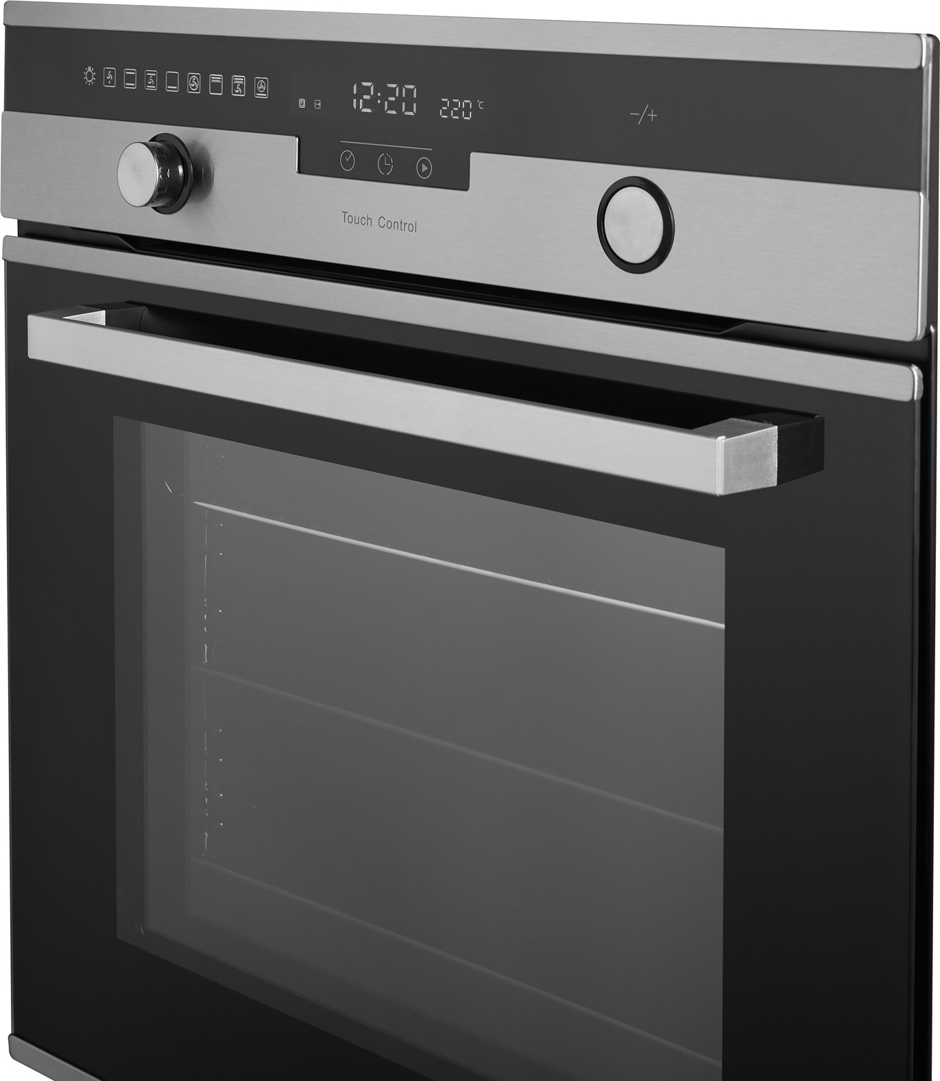 независимая установка; ШхГхВ: 59.50х53х59.50 см; объем 58 л; 9 режимов нагрева; максимальная температура 250°C; гидролизная очистка; утапливаемые переключатели; конвекция, гриль; класс энергопотребления: A; защита от детей; сенсорный дисплей