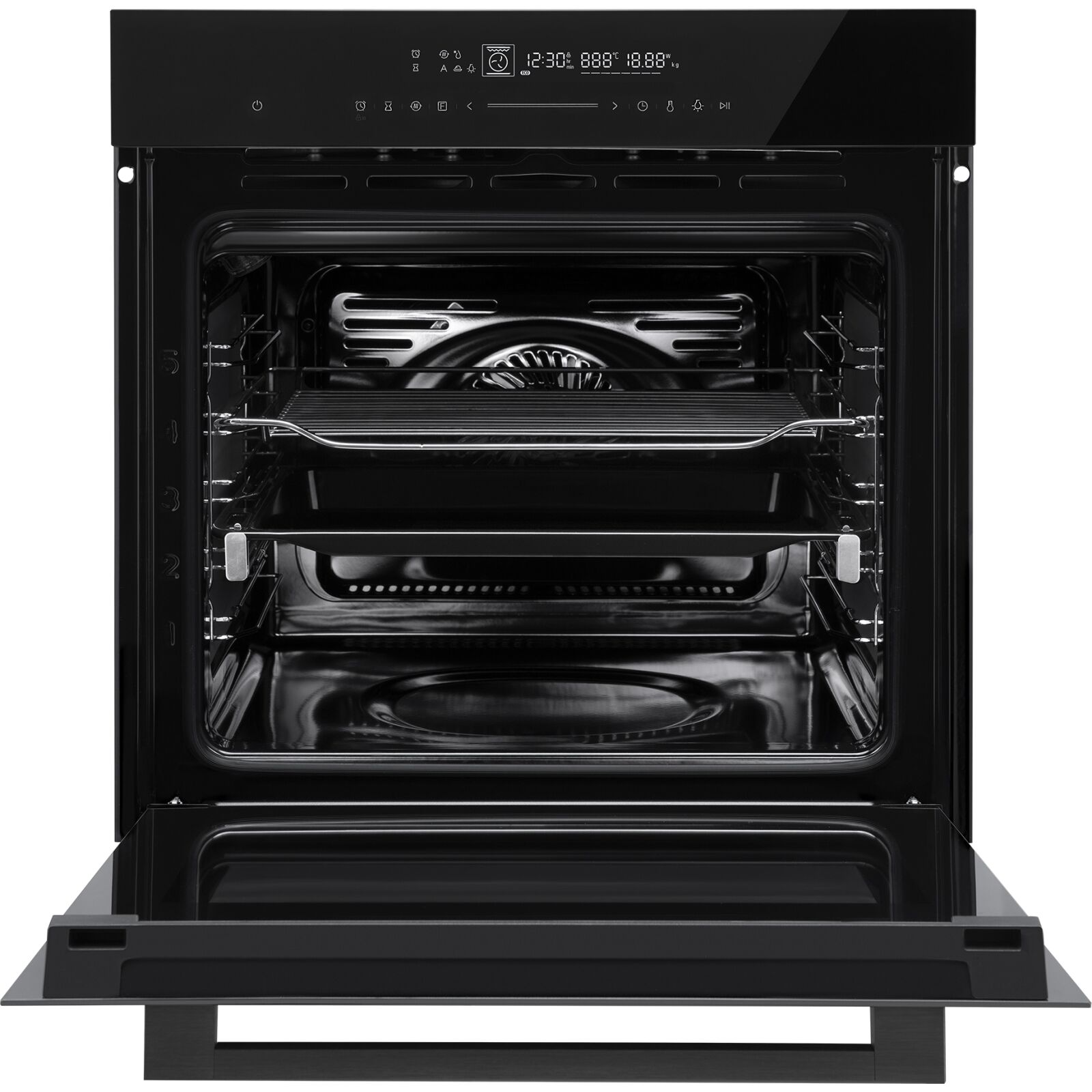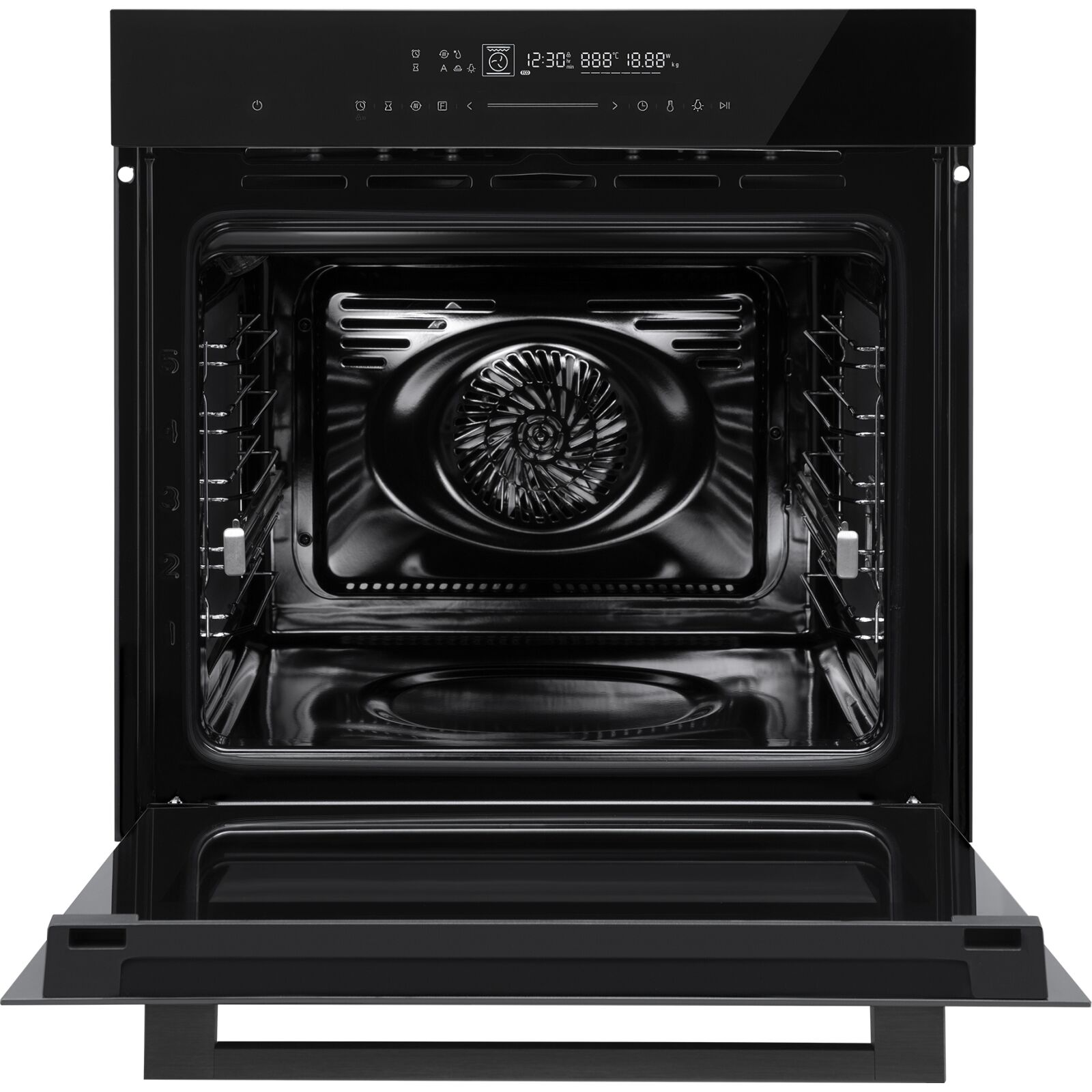 Технические характеристики: Тип духового шкафа: электрический (независимый): Функции: 13 функций: верхний и нижний нагрев (традиционное приготовление), конвекция, ЭКО, верхний и нижний нагрев + конвекция, гриль, двойной гриль с конвекцией, двойной гриль, режим для пиццы, нижний нагрев, разморозка, подсветка, ферментация, предварительный нагрев: Цвет: черный: Объём, л: 72: Тип управления: сенсорное: Количество режимов: 13: Количество стекол в дверце: 3: Мощность, кВт: 2,9: Очистка духовки: каталитическая: Дисплей: есть: Программатор: сенсорный: Доводчики дверцы: есть: Телескопические направляющие: есть: Управление: сенсорное Touch Control: Ширина, мм: 600: Глубина, мм: 566: Высота, мм: 596: Панель управления: из закаленного черного стекла: Часы: многофункциональные: Серия: PREMIUM: Регулятор-термостат: есть: Отсрочка приготовления: есть: Таймер: есть: Аксессуары: телескопические направляющие, 2 противня, 1 решетка: Специальный дизайн двери с тройным стеклом: есть: Специальный дизайн двери с большим внутренним