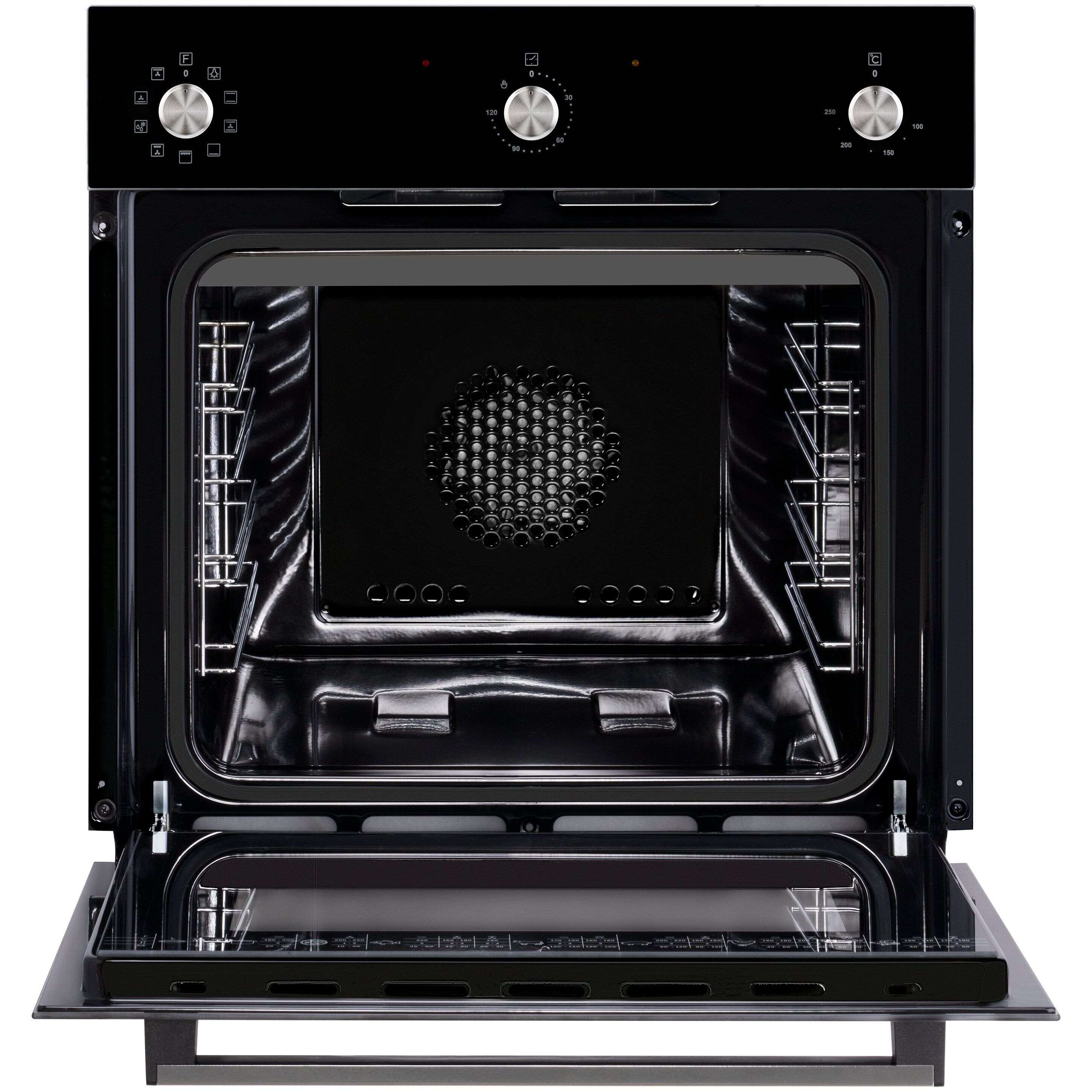 Тип духовки; электрическая; Установка; независимая; Объем духовки; 64 л; Класс энергопотребления; A; Мощность подключения; 3.1 кВт; Размеры (ВхШхГ); 57.5 х 60 x 59.5 см; Максимальная температура; 250 °C; Режимы; Режимы нагрева; большой гриль, верхний нагрев + конвекция, верхний нагрев + нижний нагрев, гриль + конвекция, конвекция, нижний нагрев, нижний нагрев + конвекция; Функция СВЧ; нет; Гриль; да; Тип гриля; электрический; Мощность гриля; 2000 Вт; Конвекция; да; Управление; Управление со смартфона; нет; Переключатели; поворотные; Тип поворотных переключателей; механические; Особенности; Особенности конструкции; эмаль легкой чистки; Дополнительные функции; размораживание, таймер; Электроподжиг; нет; Газ-контроль; нет; Дверца духовки; откидная; Число стекол дверцы духовки; три; Подробная комплектация; электрический шкаф; противень 1 шт; решетка 1 шт; решетки боковые 2 шт; Дополнительная информация; количество уровней высоты противня 4