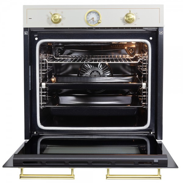 Вид: встраиваемый: Тип: электрический: Тип подключения: независимый: Объем, в литрах: 78: Максимальная температура, в °C: 250: Управление: поворотное: Утапливаемые переключатели: Нет: Дисплей: Нет: Внутреннее покрытие: эмаль легкой очистки: Класс энергоэффективности: A: Функции: Функция СВЧ: Нет: Гриль: Да: Конвекция: Да: Функция пароварки: Нет: Дополнительные функции: таймер; часы: Конструкция: Тип дверцы: откидная: Количество стекол дверцы: 2: Телескопические направляющие: на четырех уровнях: Подсветка камеры: Да: Конструктивные особенности: доводчик дверцы; съемная дверца: Цвет корпуса: бежевый: Размеры и вес: Высота, в см: 59.5: Ширина, в см: 59.5: Глубина, в см: 54.7: Габариты (ВxШxГ), в см: 59.5x59.5x56.8: Высота встраивания, в см: 60: Ширина встраивания, в см: 56: Глубина встраивания, в см: 55;