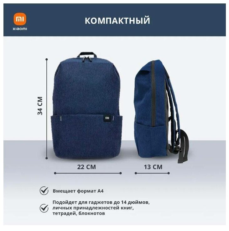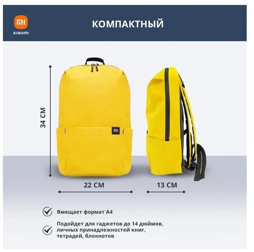 Идеален для активного образа жизни: спорт, путешествия и прогулки. Всё что нужно у вас в рюкзаке. Портативный рюкзак Xiaomi Mi Colorful Mini Backpack Bag 10 литров - стильный рюкзак для повседневной жизни. Модный, долговечный, эргономичный - лучший аксессуар для повседневной жизни. Его отличают вместительность и проработанные детали, швы аккуратно обработаны, строчки ровные, каждая деталь вшита идеально. Широкие лямки. Сверху имеется ручка для переноски и брендированный декор для стильного вида.