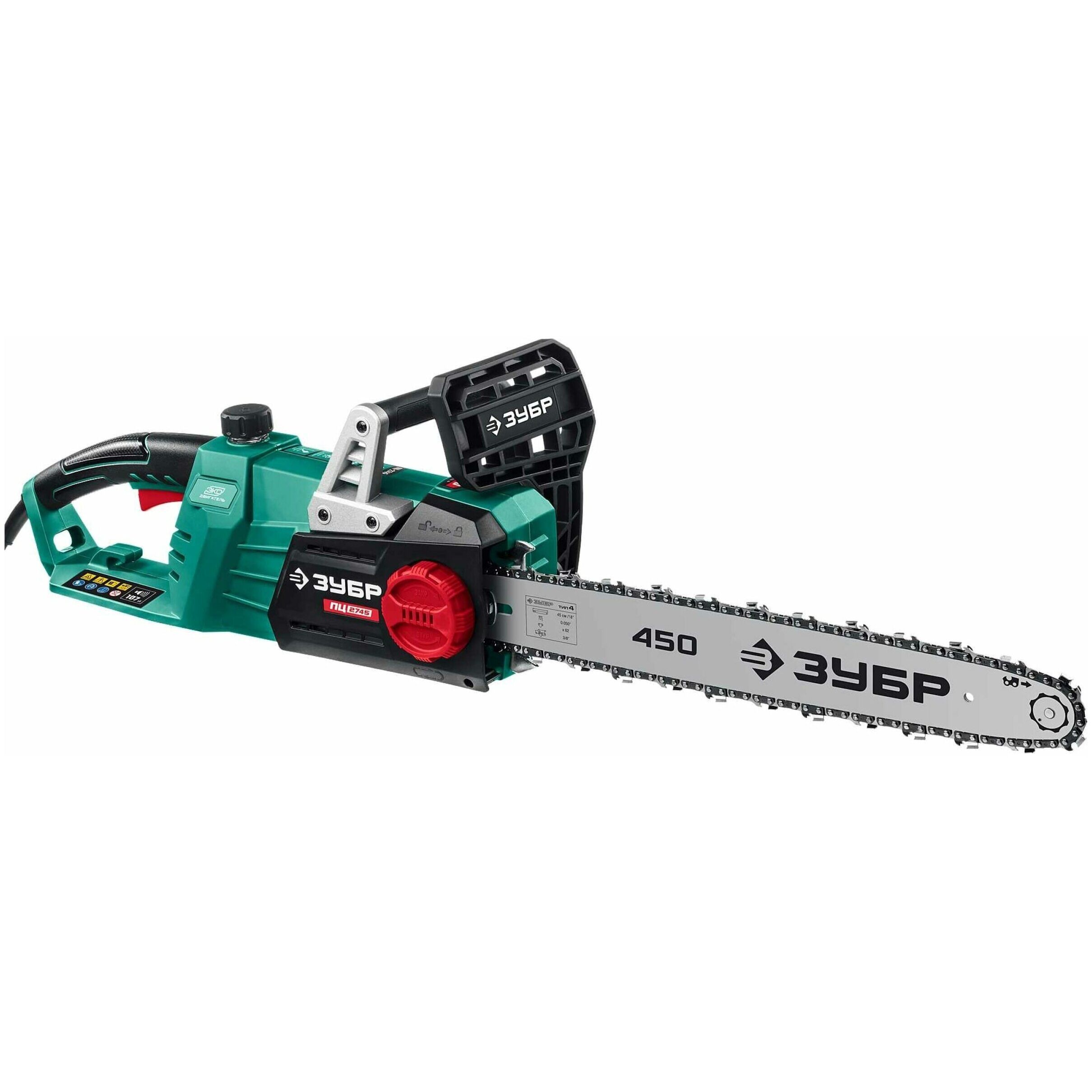 Универсальный и надежный помощник для валки деревьев, а так же пиления веток, обрезки сучьев, пиления деревянных бревен и проч. В отличие от бензиновой, электрическая пила оснащена надежным двигателем, не требует постоянных расходных материалов (топлива), не имеет проблем с запуском при любой температуре, требует минимальных операций при подготовке к работе. ; Мощный двигатель, простое натяжение и дозированная смазка цепи, практически отсутствующая вибрация, минимальное обслуживание делают пилу легкой в обращении и комфортной в работе. ; Мгновенная остановка цепи, приводимая в действие при откидывании защитного щитка, а также встроенный цепеуловитель и металлический упор способствуют безопасности применения. ; Для работы с инструментом дополнительно требуется приобрести масло (рекомендуем ЗУБР змпм) и удлинитель-шнур (сечение провода не менее 1 мм2). -Легкая, эргономичная и удобная пила с простой конструкцией, гарантирующей высокую надежность. ; Мощность ; 2700 Вт ; Шаг цепи ; 3/8 дюйма ; Максимальная длина