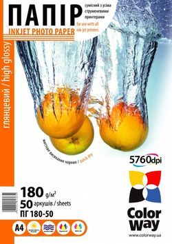 Фотобумага ColorWay глянцевая 180г/м², A4, 50л.