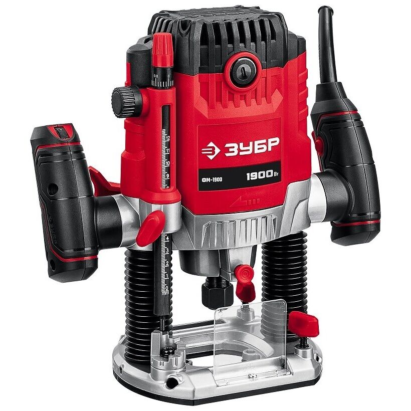 Основные характеристики; Тип; вертикальный; Потребляемая мощность; 1900 Вт; Скорость вращения; 6000-23000 об/мин; Ход фрезы (глубина фрезерования); 50 мм; Макс. диаметр фрезы; 74 мм; Размер цанг в комплекте; "6, 8, 12 мм"; Подошва; литая; Регулировка скорости вращения; есть; Поддержание постоянной скорости под нагрузкой; есть; Плавный пуск; есть; Револьверный упор; есть; Точная установка глубины фрезерования; есть; Фиксация шпинделя; есть; Дополнительно; Подключение пылесоса; есть; Длина кабеля; 3 м; Уровень шума; 90 дБ; Размеры; 295x300x163 мм; Вес; 3.95 кг; Комплектация; фрезер, цанга 12 мм, втулки 6 и 8 мм, упор горизонтальный, пылеотводящий кожух, экран защитный, ключ гаечный, руководство по эксплуатации